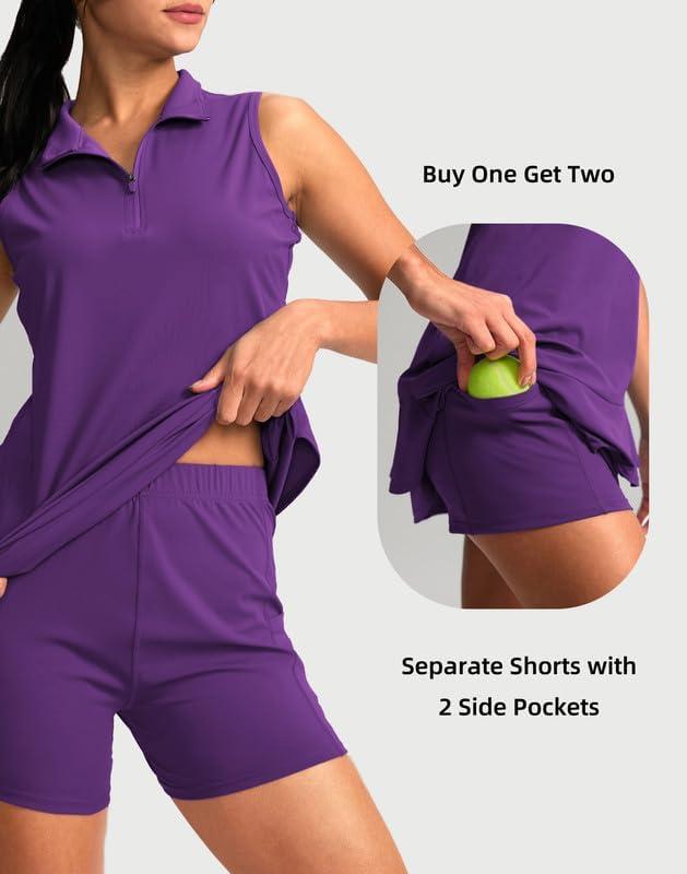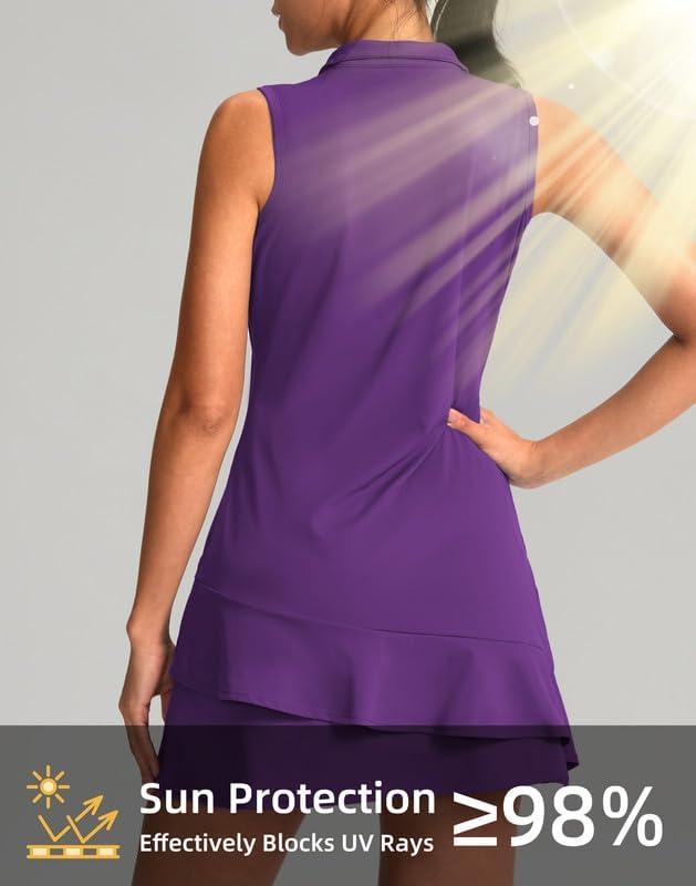 G Gradual Tennis Dress for Women Golf Outfits with Shorts and Pockets Sleeveless Active Exercise Athletic Dresses for Women(Purple)