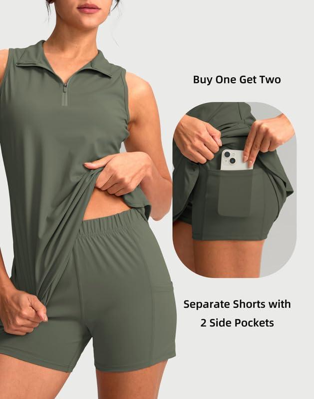 G Gradual Tennis Dress for Women Golf Outfits with Shorts and Pockets Sleeveless Active Exercise Athletic Dresses for Women(Sage Green)