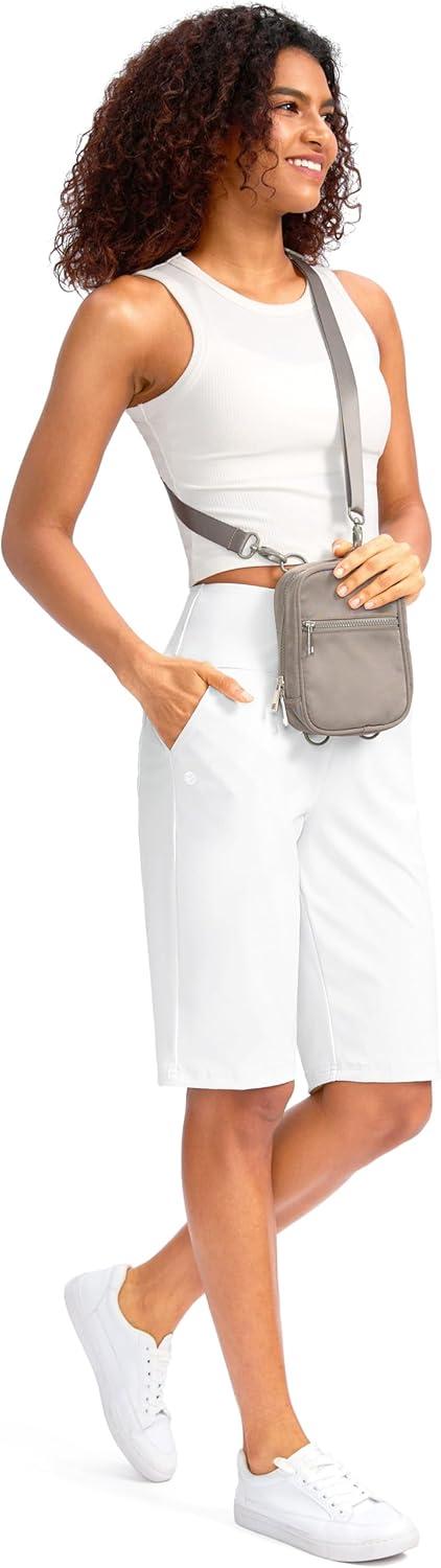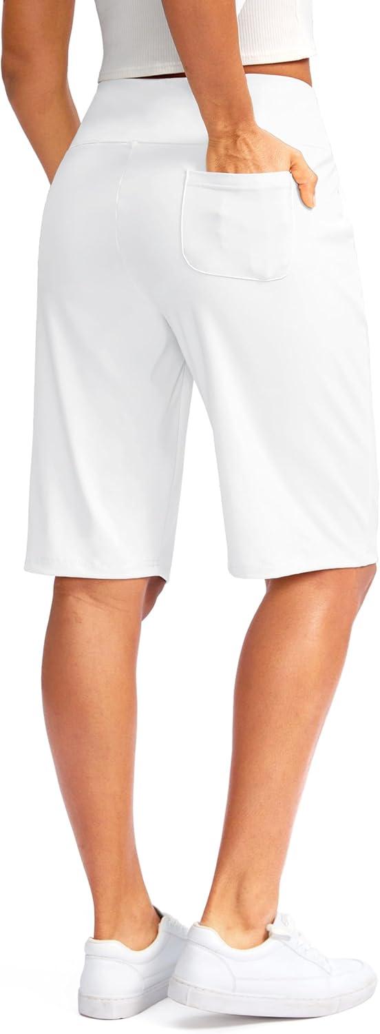 G Gradual Women's 12" Bermuda Long Shorts with Pockets High Waisted Stretch Knee Length Shorts for Women Summer Walking(C-white)