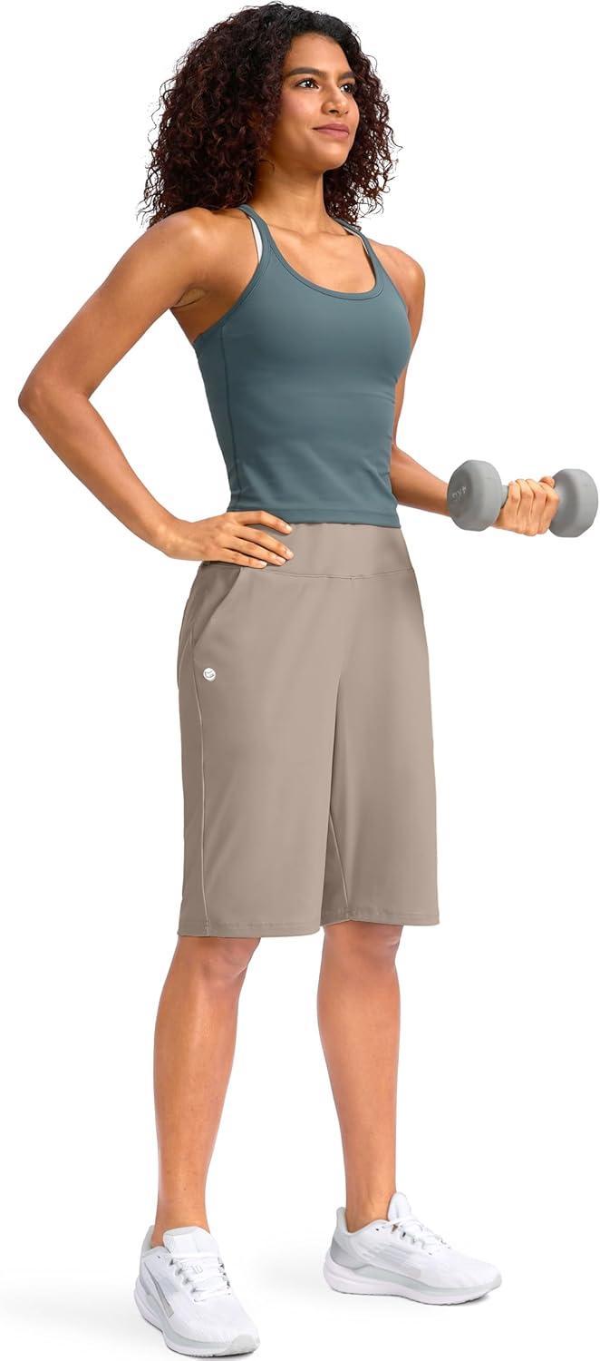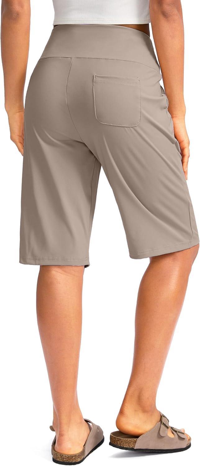 G Gradual Women’s 12″ Bermuda Long Shorts with Pockets High Waisted Stretch Knee Length Shorts for Women Summer Walking(Dark Khaki)