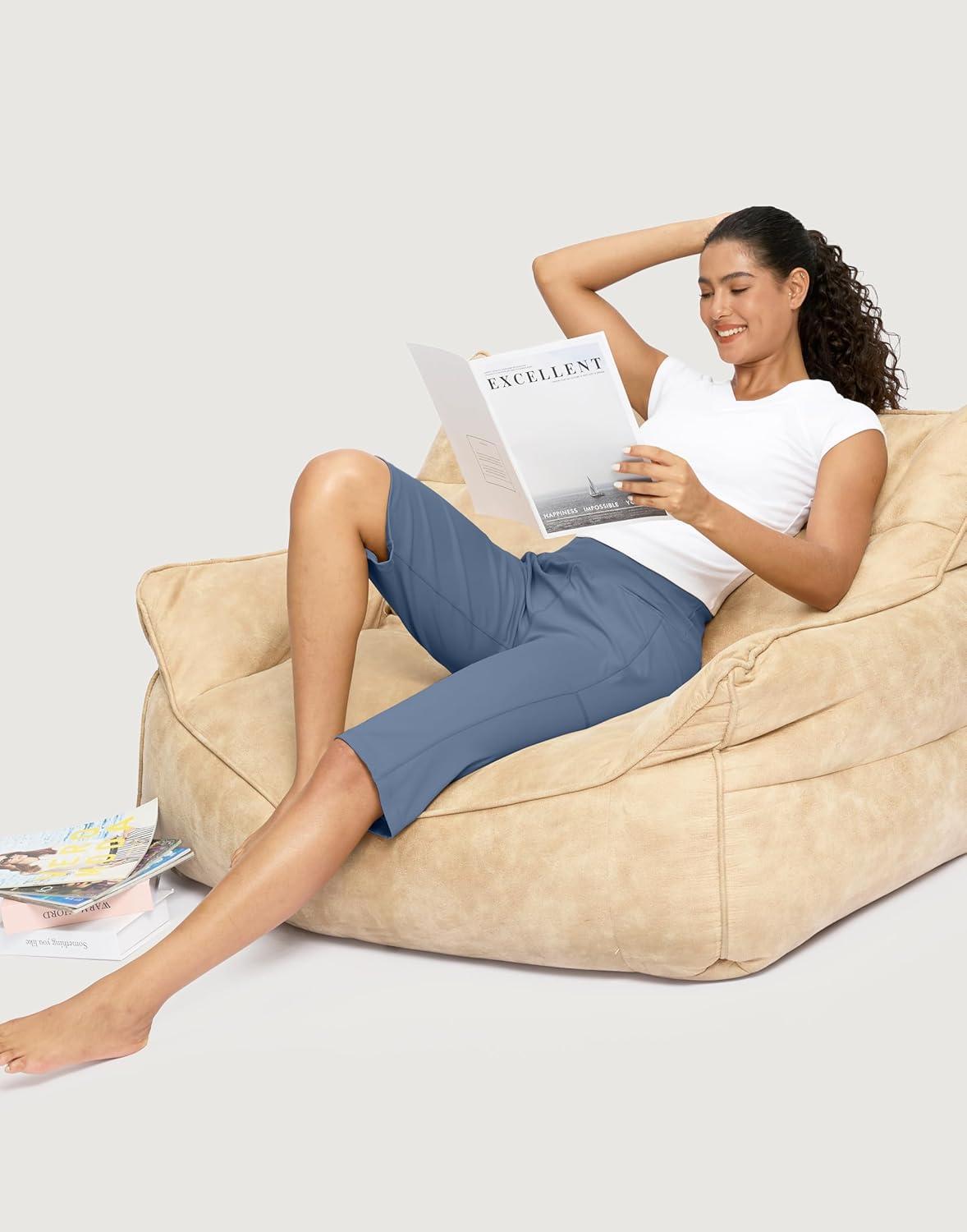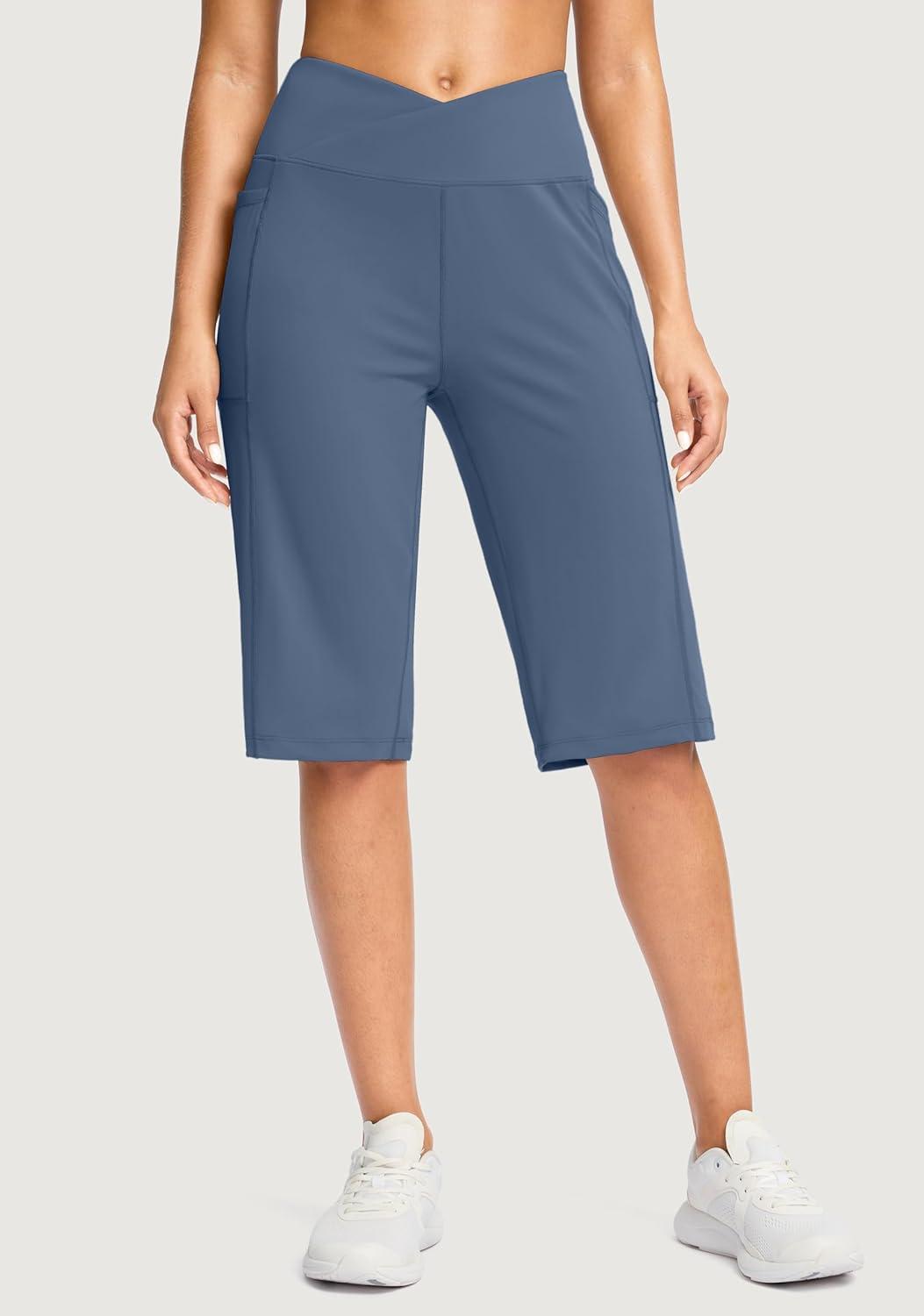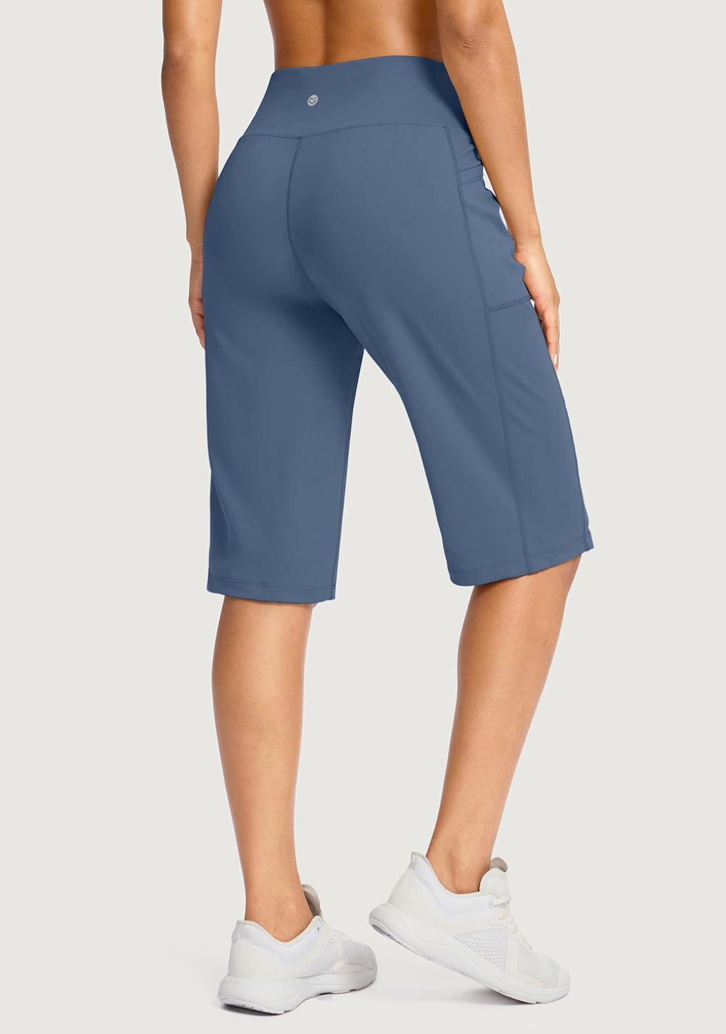 G Gradual Women's 14" Bermuda Long Shorts Knee Length High Waisted Athletic Shorts with Pockets Stretch Casual Summer Walking(Universe Blue)