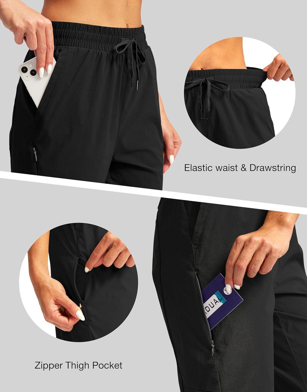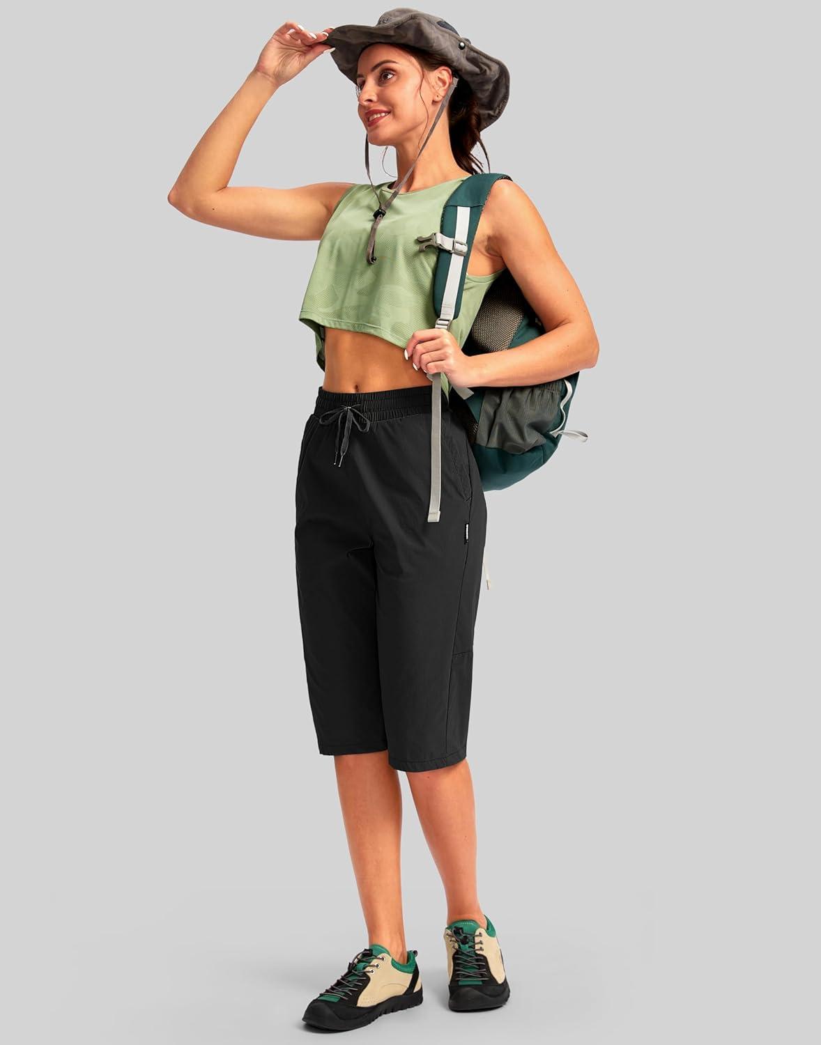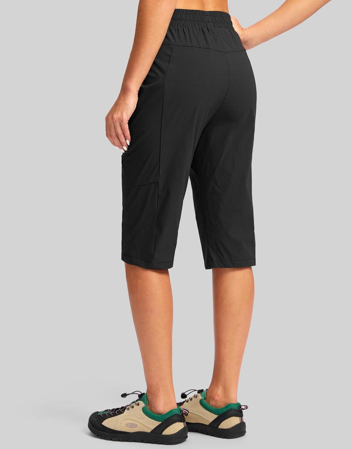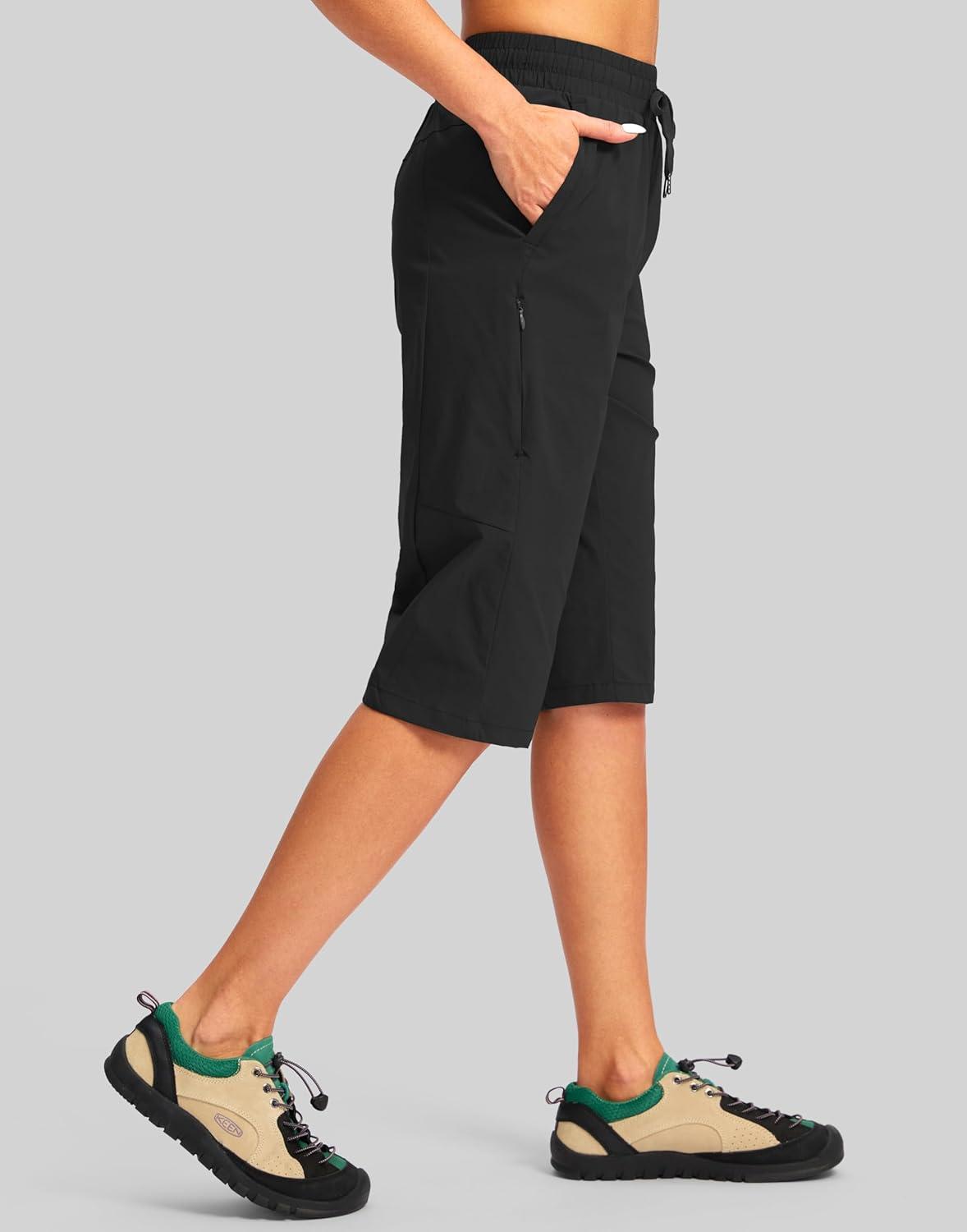 G Gradual Women's 15'' Long Shorts Below The Knee Hiking Cargo Capris Stretch Quick Dry Bermuda Shorts for Women with Pockets(Black)