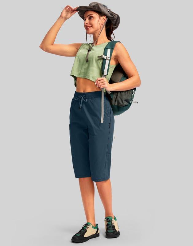 G Gradual Women's 15'' Long Shorts Below The Knee Hiking Cargo Capris Stretch Quick Dry Bermuda Shorts for Women with Pockets(Dusty Blue)