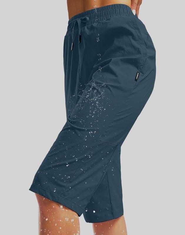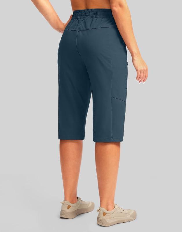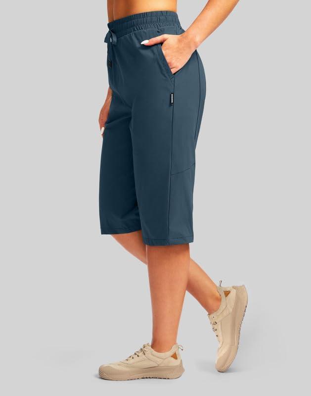 G Gradual Women’s 15” Long Shorts Below The Knee Hiking Cargo Capris Stretch Quick Dry Bermuda Shorts for Women with Pockets(Dusty Blue)