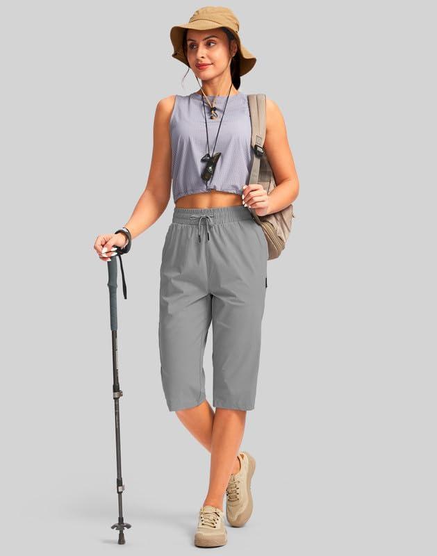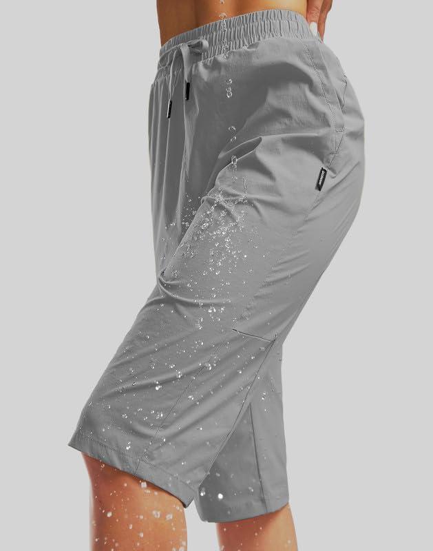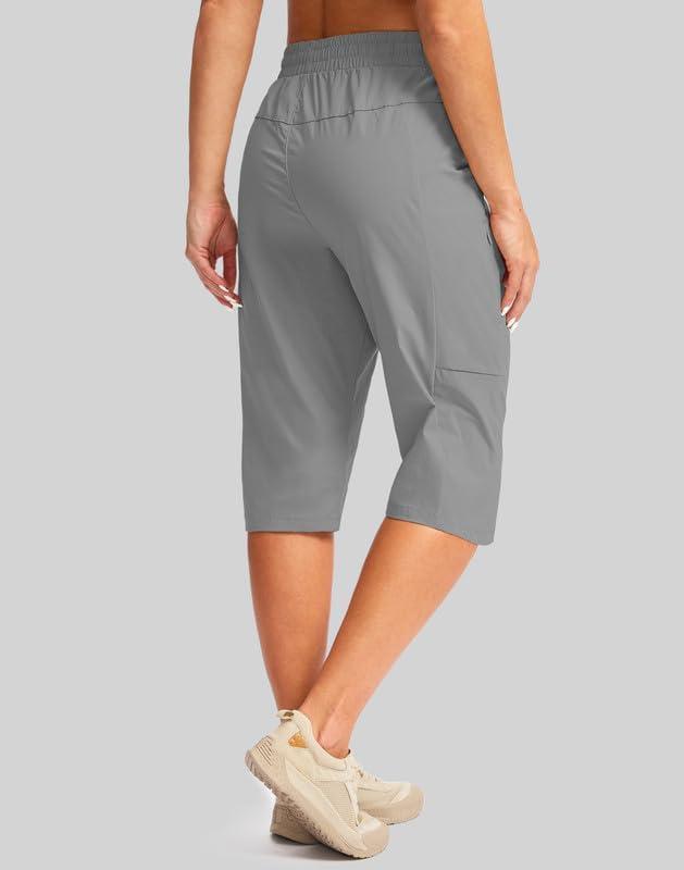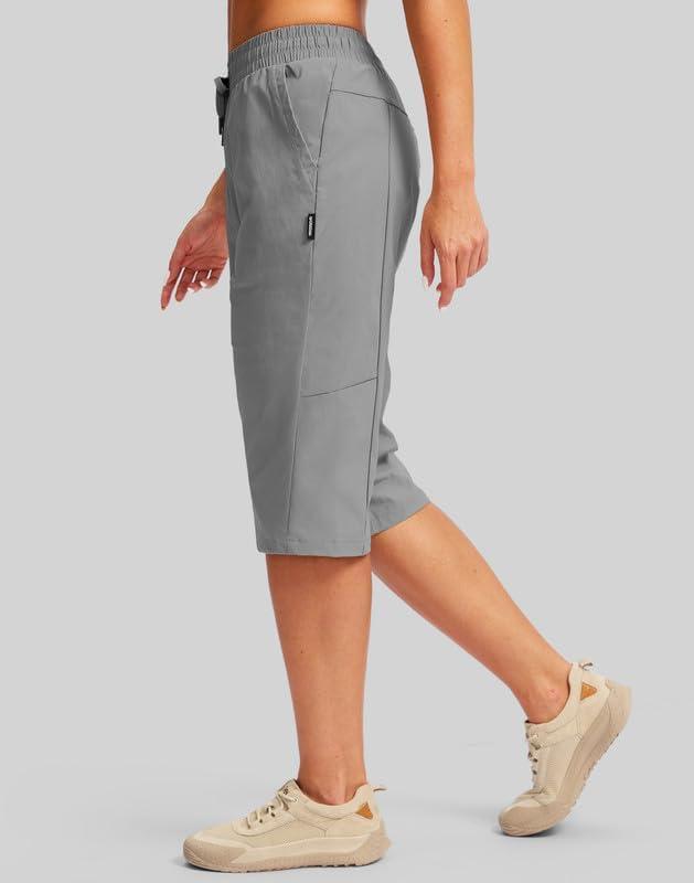 G Gradual Women's 15'' Long Shorts Below The Knee Hiking Cargo Capris Stretch Quick Dry Bermuda Shorts for Women with Pockets(Light Grey)