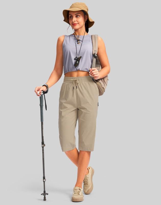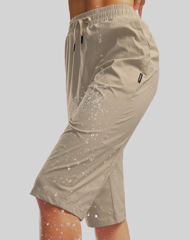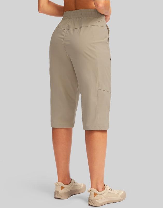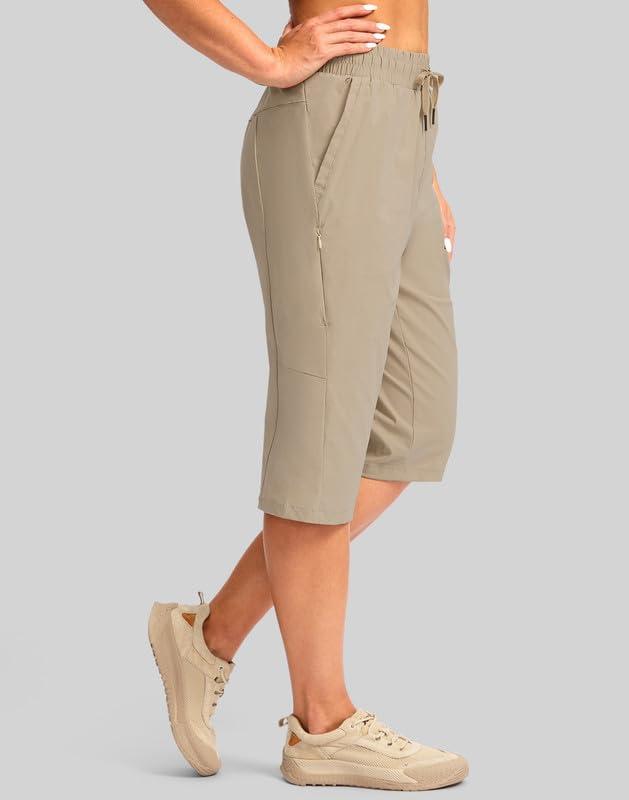 G Gradual Women's 15'' Long Shorts Below The Knee Hiking Cargo Capris Stretch Quick Dry Bermuda Shorts for Women with Pockets(Light Khaki)