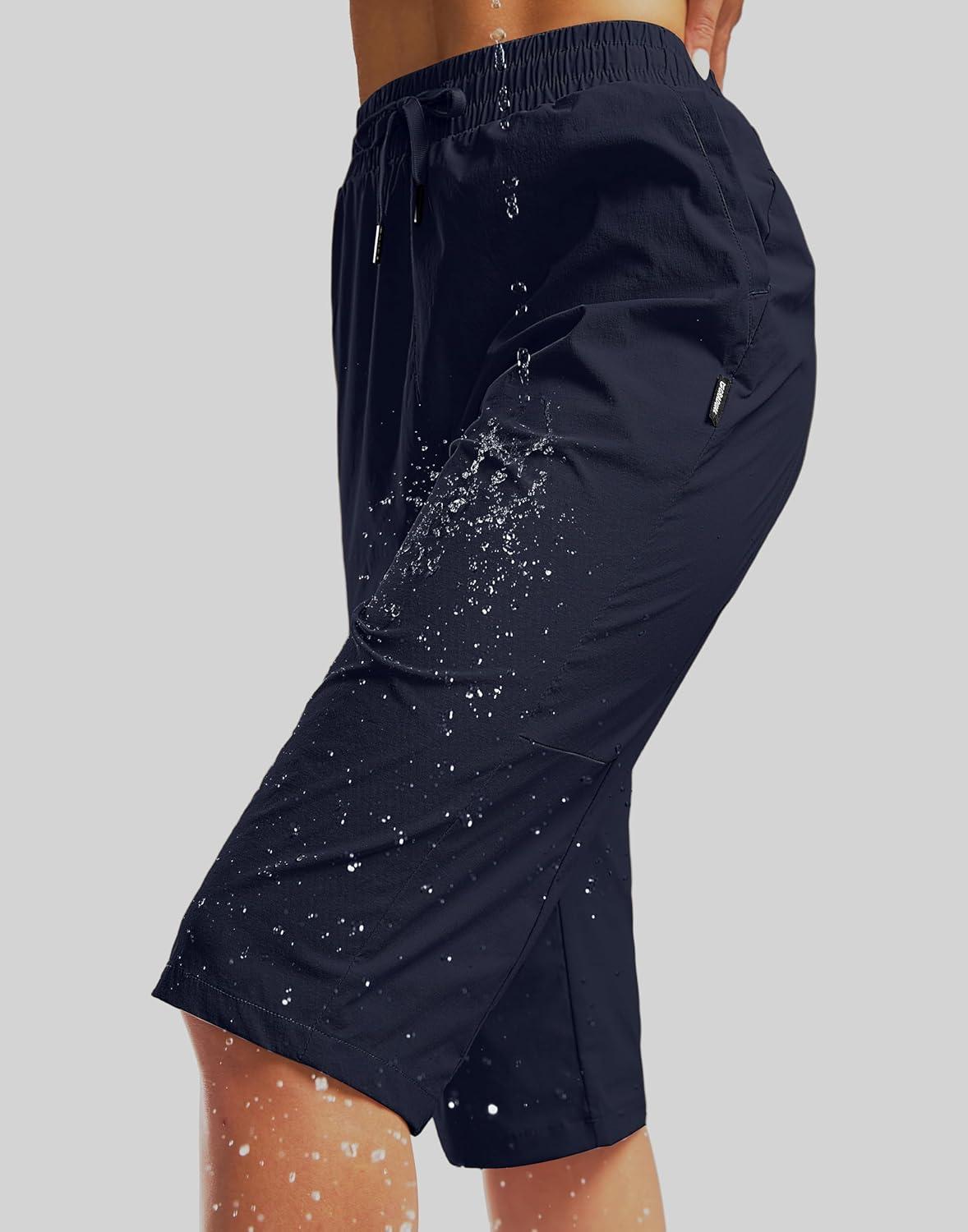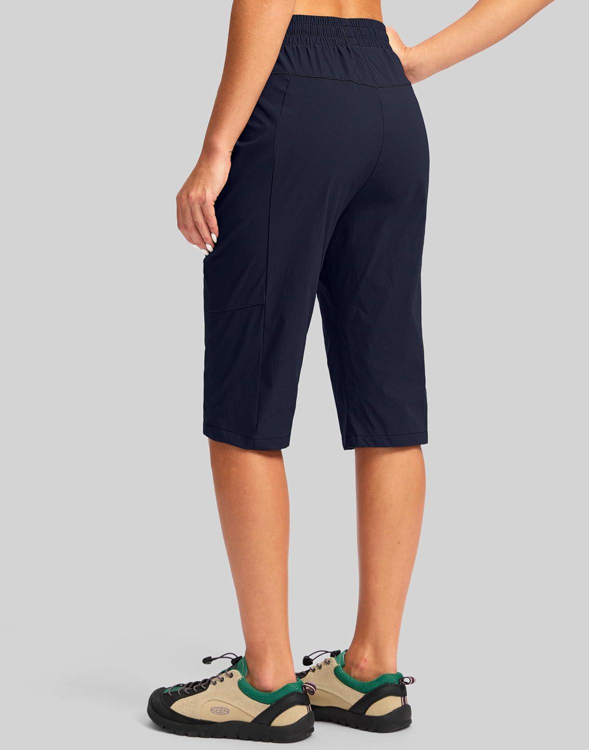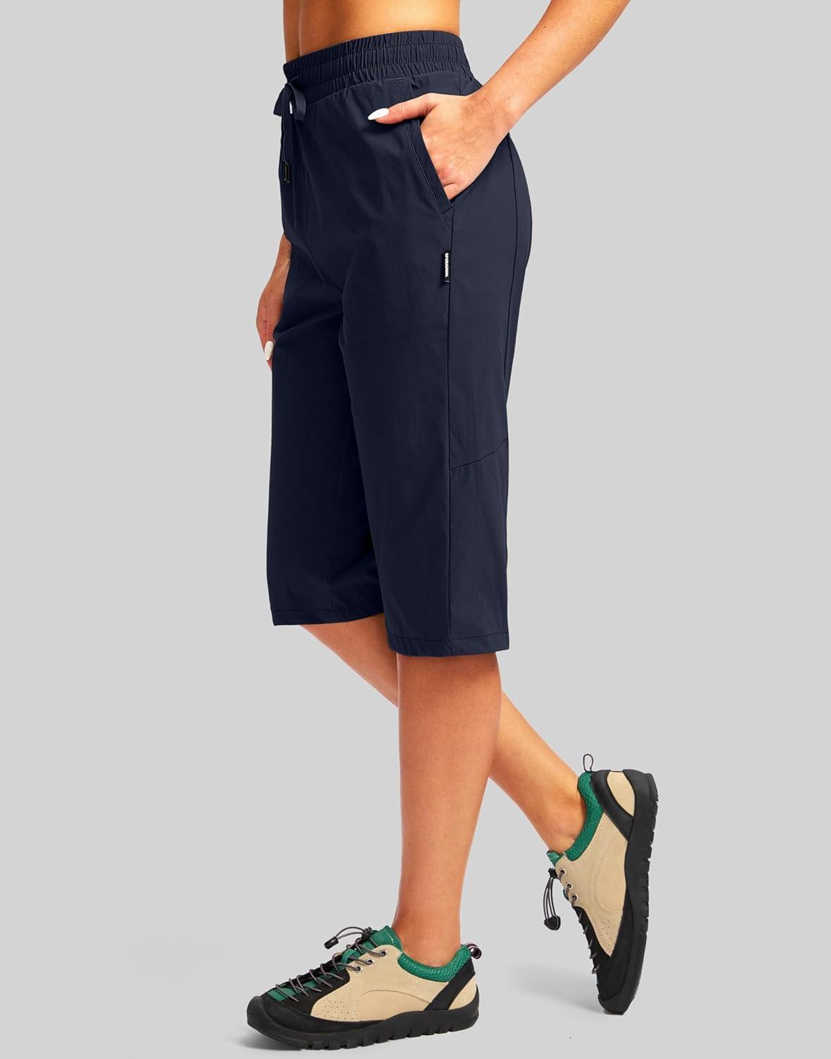 G Gradual Women's 15'' Long Shorts Below The Knee Hiking Cargo Capris Stretch Quick Dry Bermuda Shorts for Women with Pockets(Navy)
