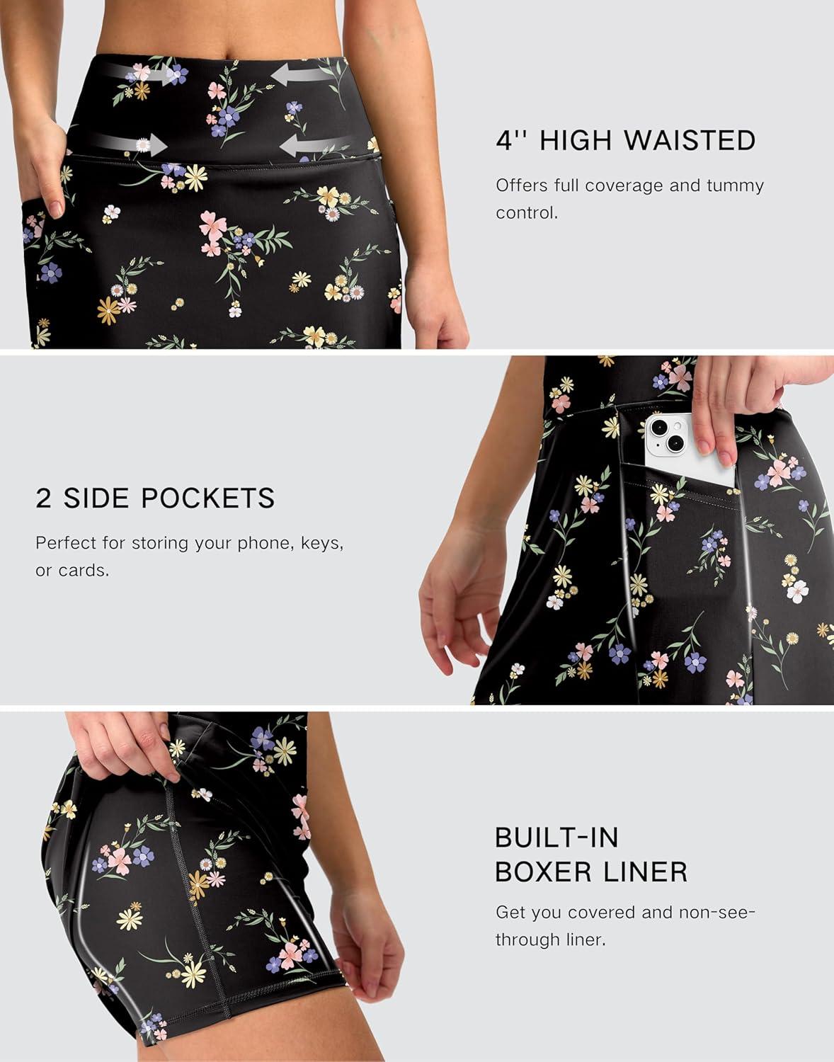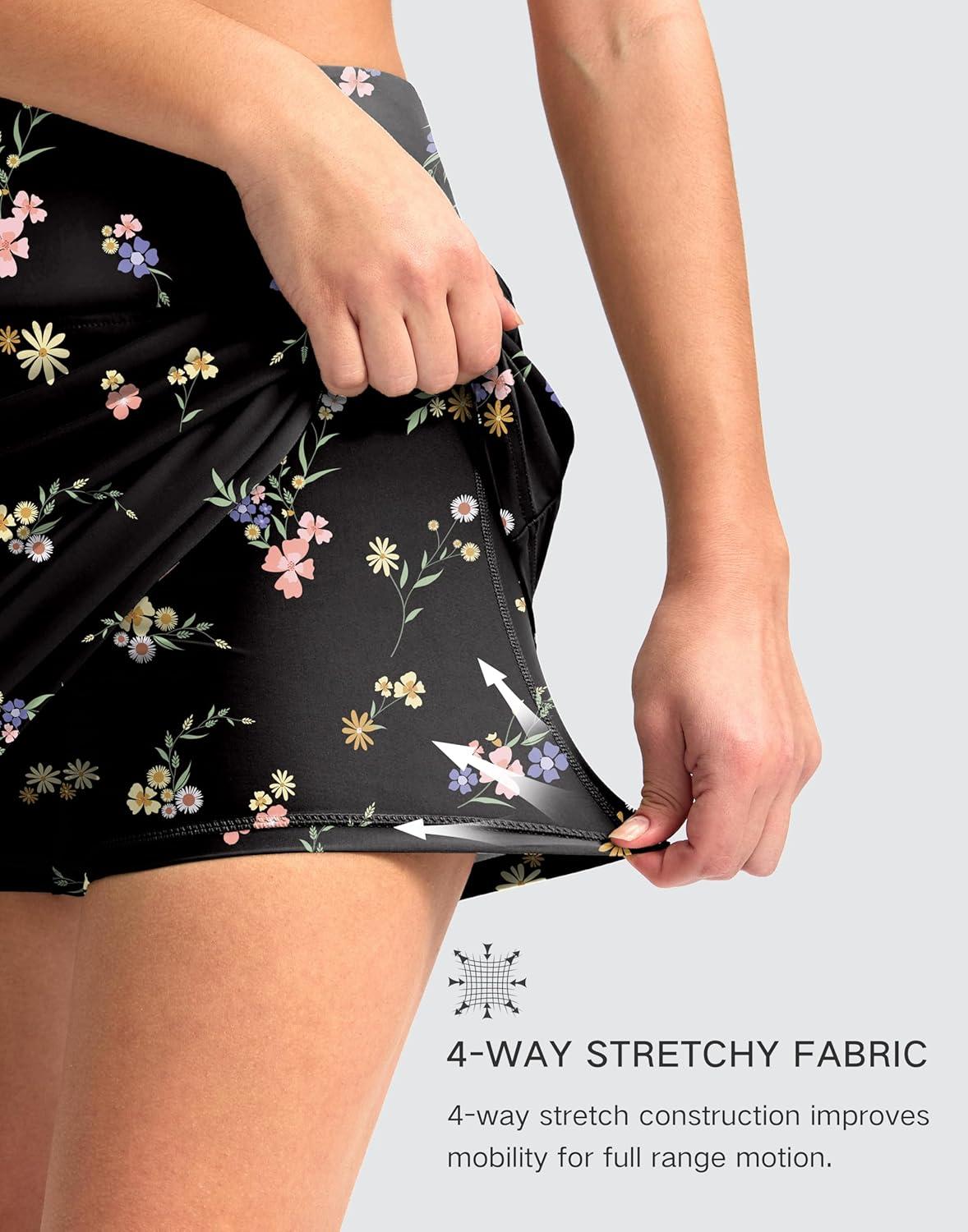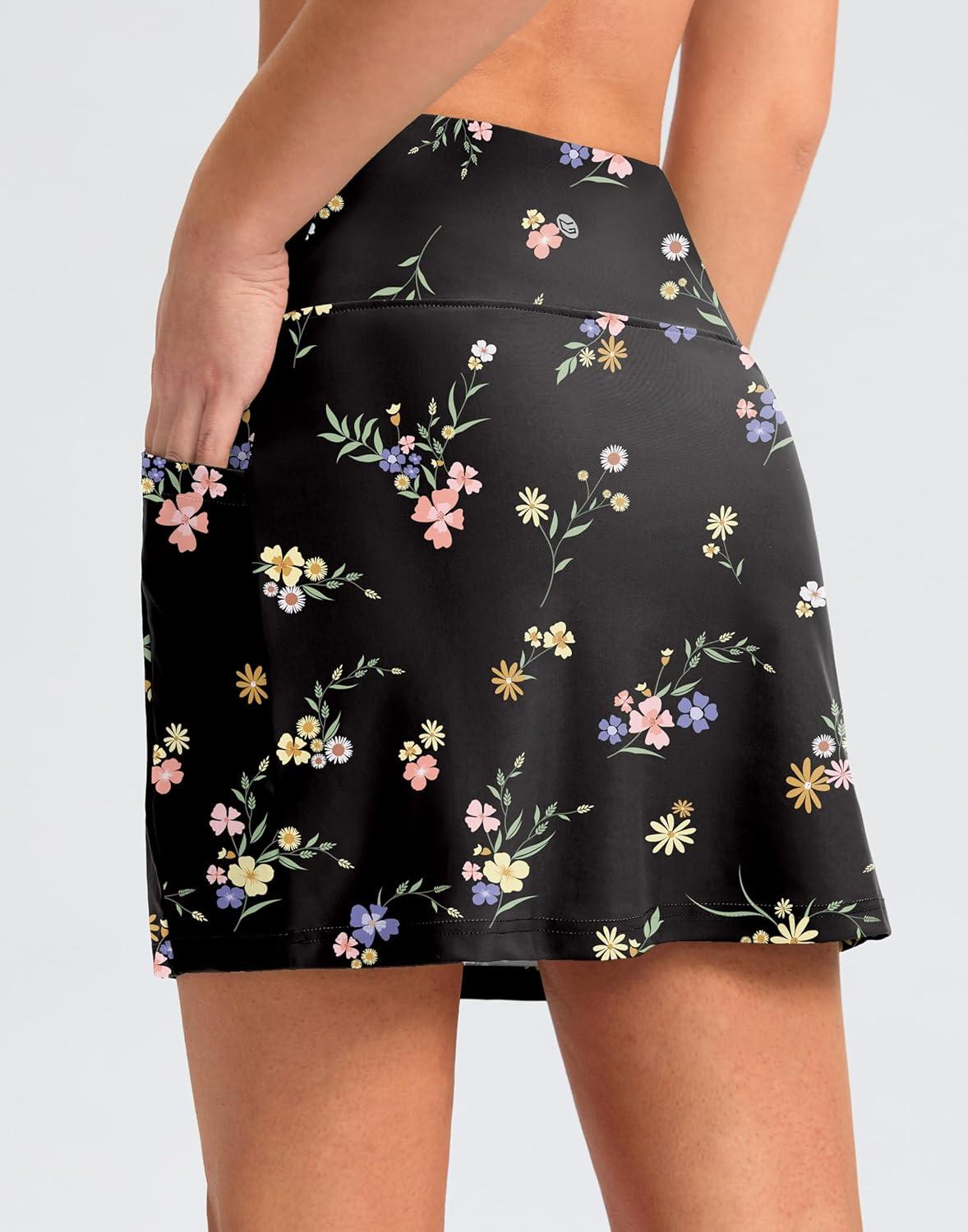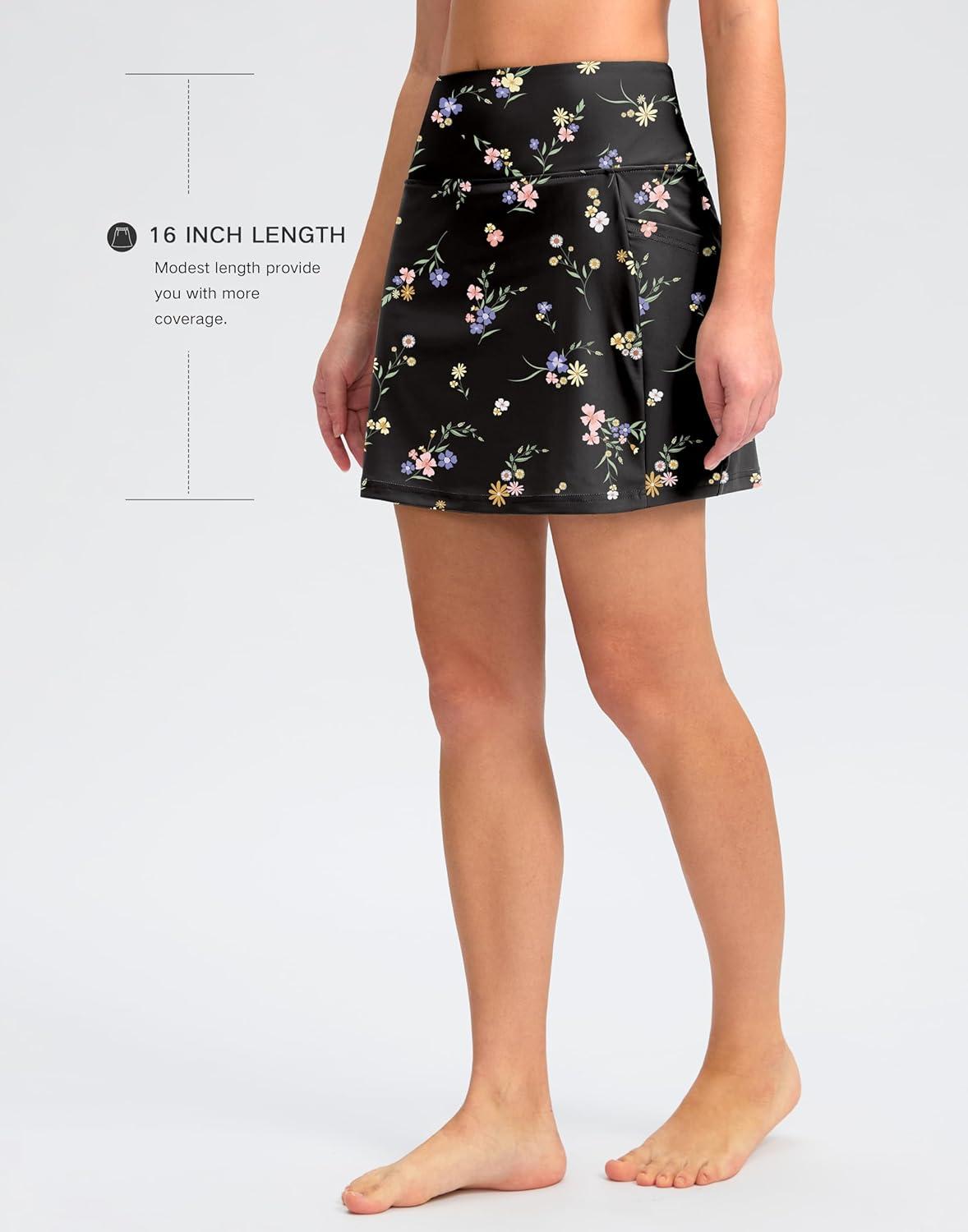 G Gradual Women's 16" Swim Skirt with Pockets High Waisted Tummy Control Modest Swimsuit Bathing Suit Bottoms for Women(Black Floral)