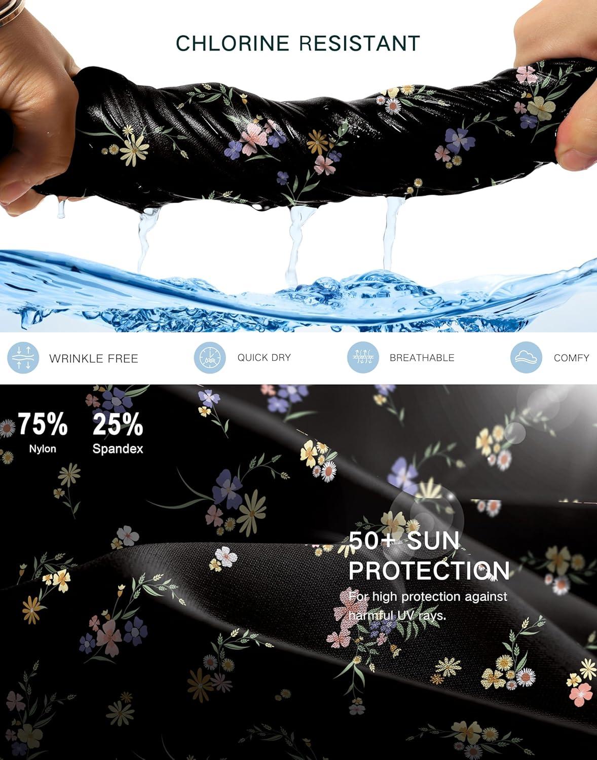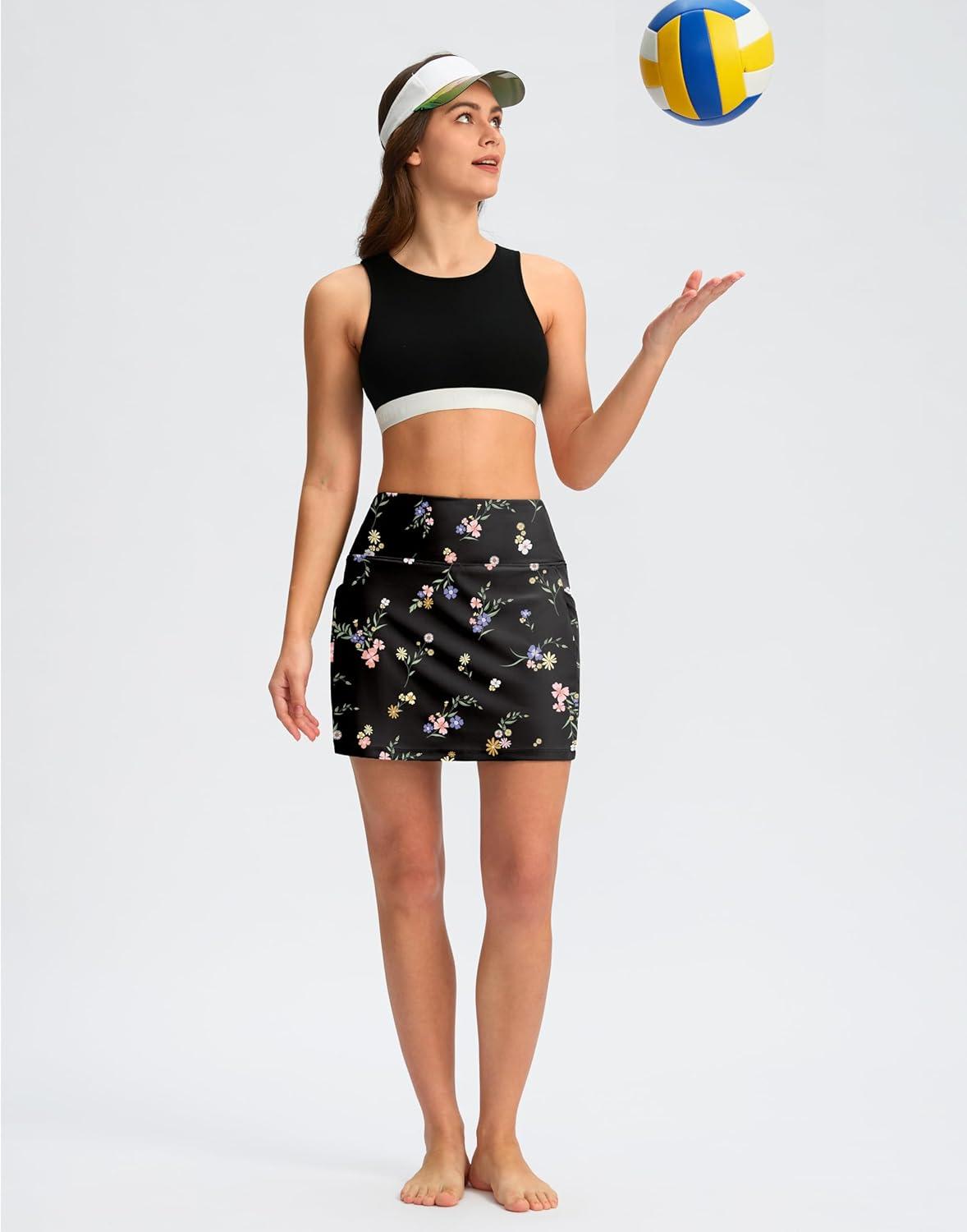 G Gradual Women’s 16″ Swim Skirt with Pockets High Waisted Tummy Control Modest Swimsuit Bathing Suit Bottoms for Women(Black Floral)