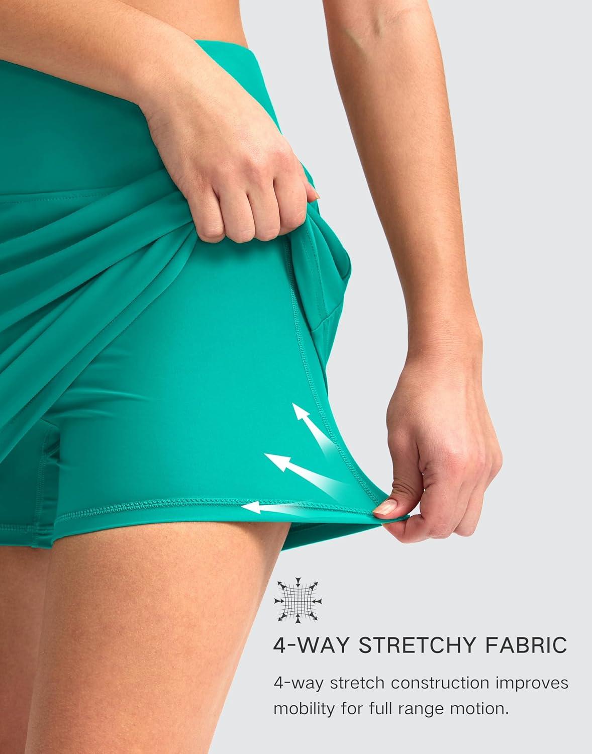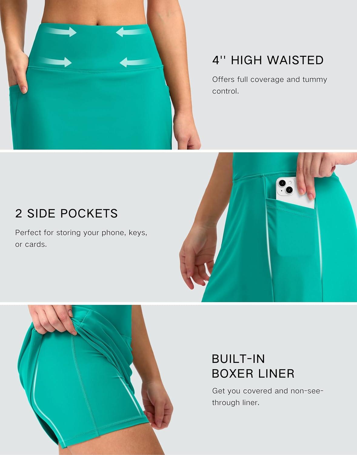 G Gradual Women's 16" Swim Skirt with Pockets High Waisted Tummy Control Modest Swimsuit Bathing Suit Bottoms for Women(Cyan)