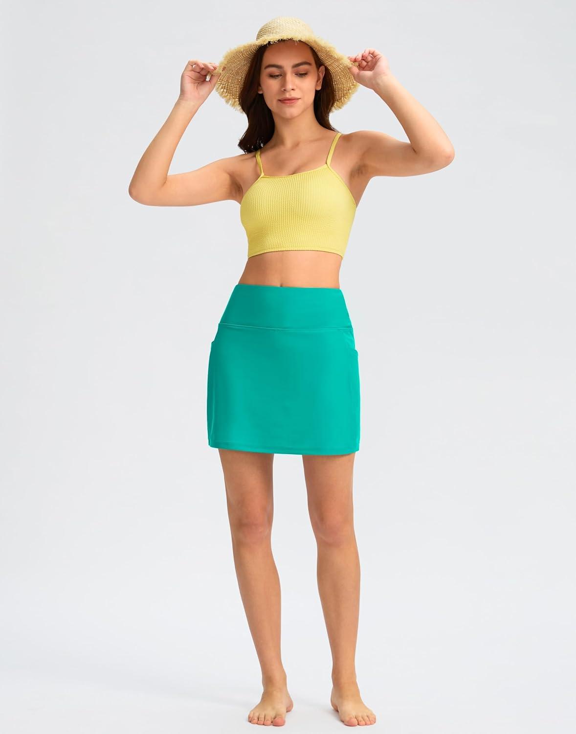 G Gradual Women’s 16″ Swim Skirt with Pockets High Waisted Tummy Control Modest Swimsuit Bathing Suit Bottoms for Women(Cyan)