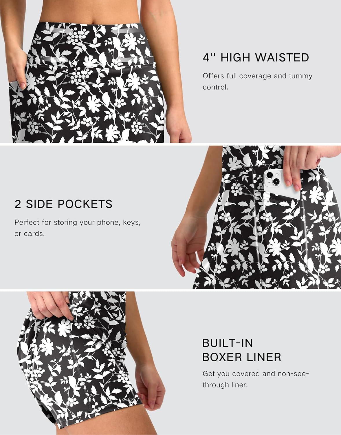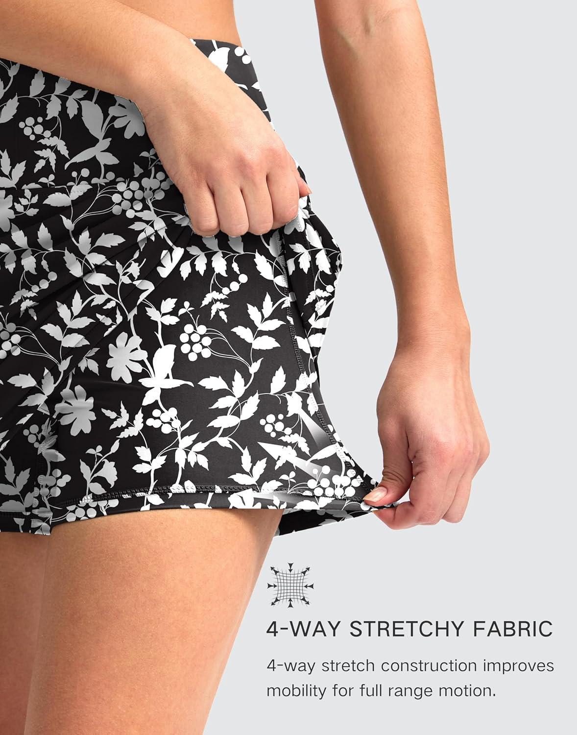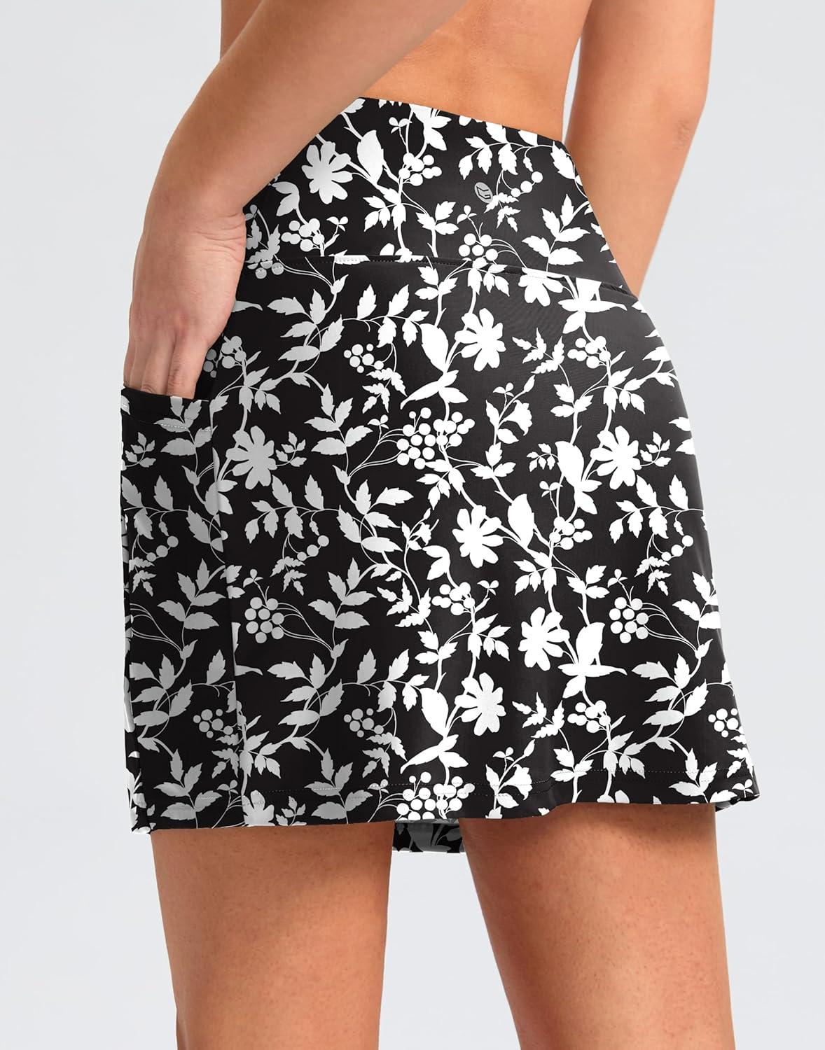 G Gradual Women’s 16″ Swim Skirt with Pockets High Waisted Tummy Control Modest Swimsuit Bathing Suit Bottoms for Women(Black Floral)