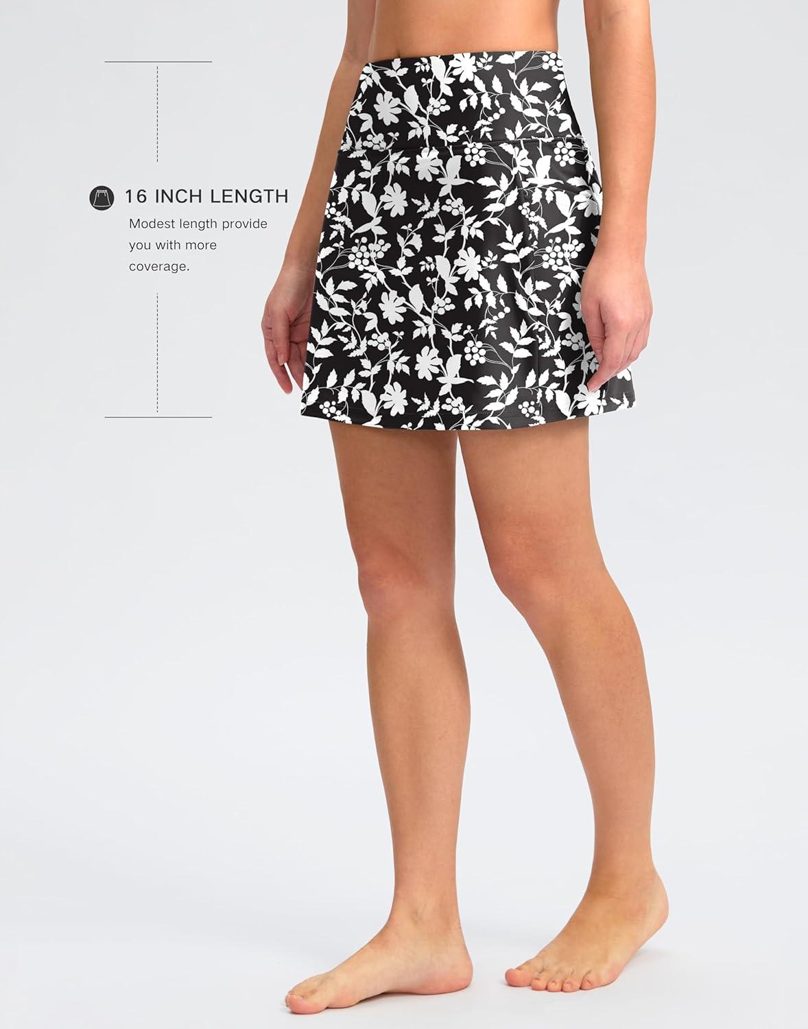 G Gradual Women's 16" Swim Skirt with Pockets High Waisted Tummy Control Modest Swimsuit Bathing Suit Bottoms for Women(D White Flower)