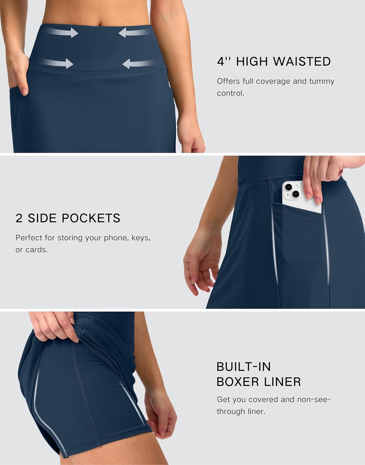 G Gradual Women's 16" Swim Skirt with Pockets High Waisted Tummy Control Modest Swimsuit Bathing Suit Bottoms for Women(Deep Blue)