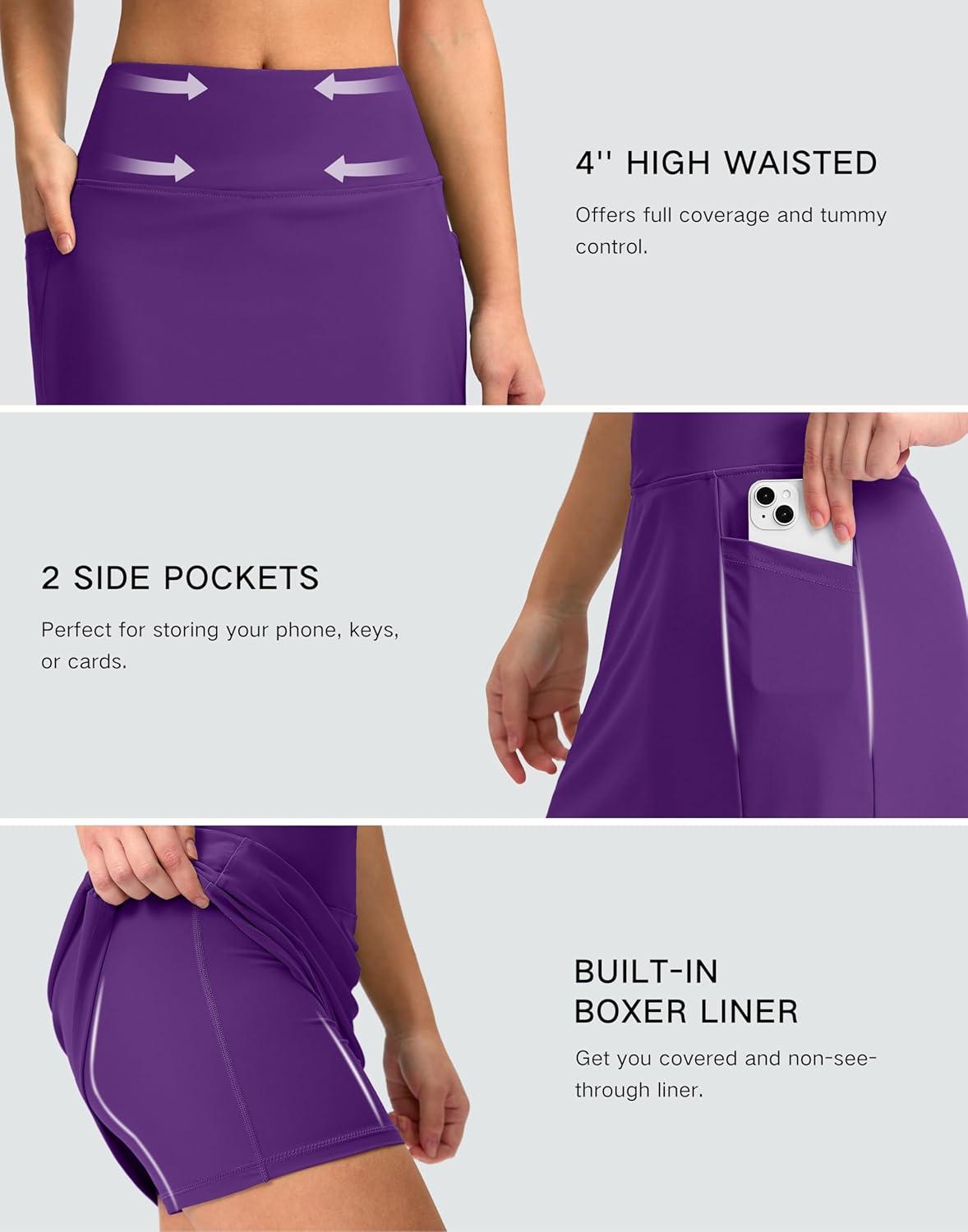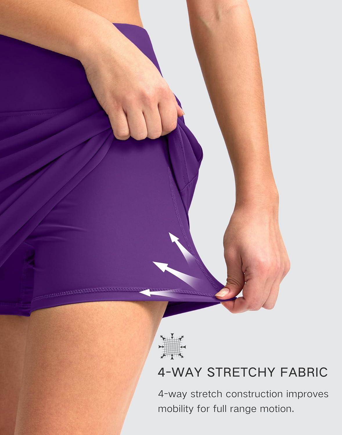 G Gradual Women’s 16″ Swim Skirt with Pockets High Waisted Tummy Control Modest Swimsuit Bathing Suit Bottoms for Women(Purple)