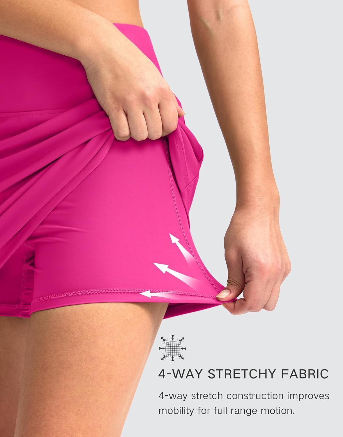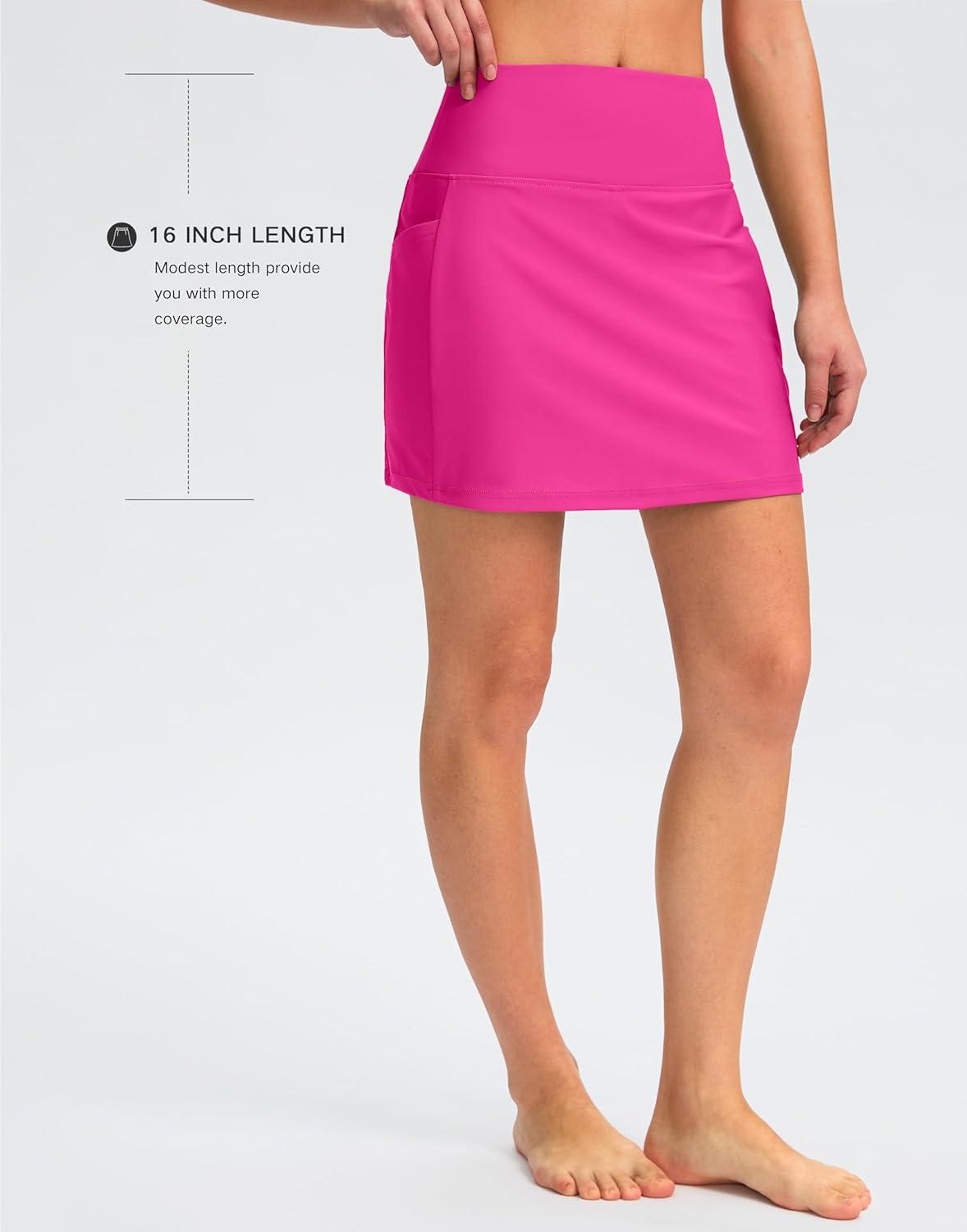 G Gradual Women's 16" Swim Skirt with Pockets High Waisted Tummy Control Modest Swimsuit Bathing Suit Bottoms for Women(Rosy)