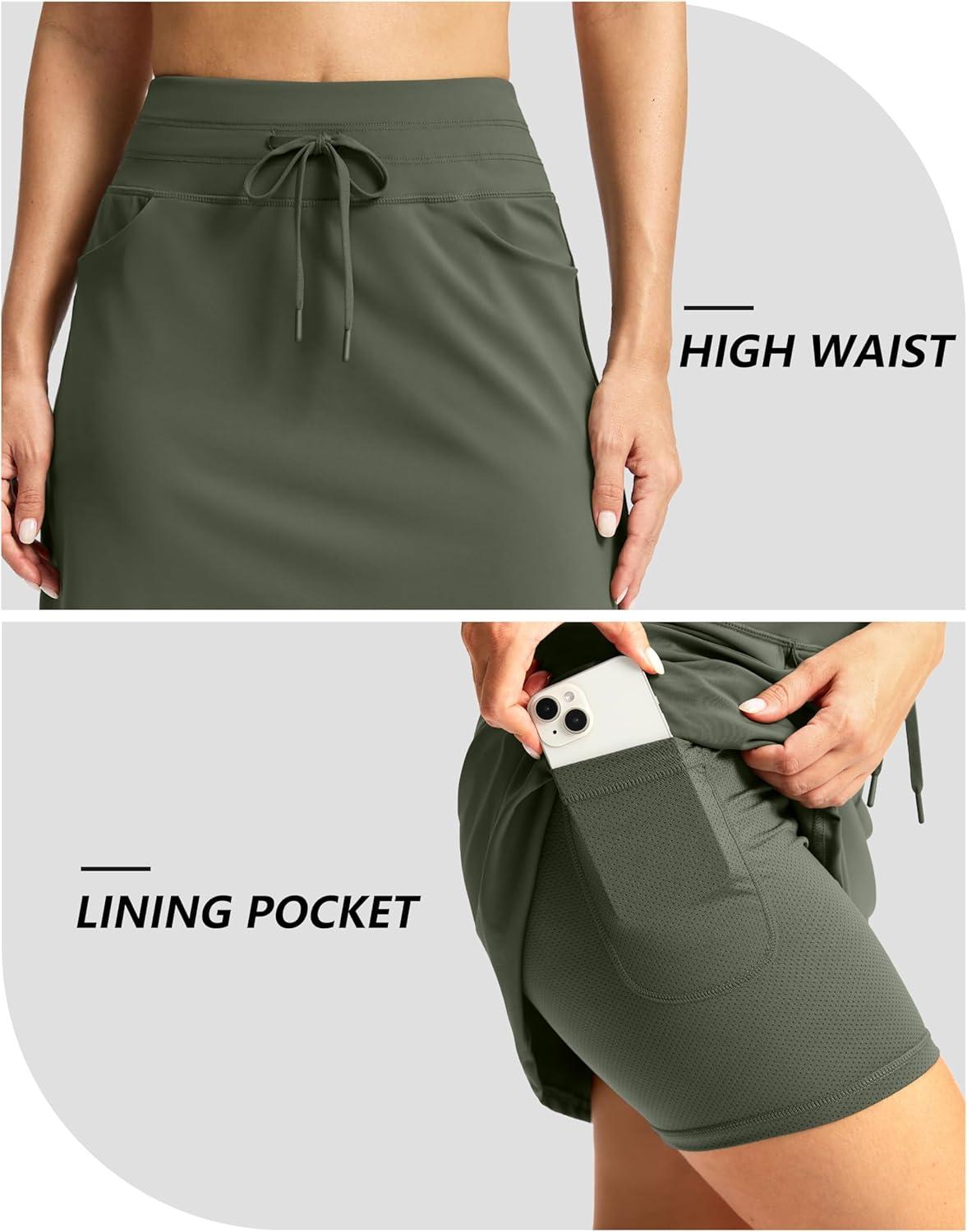 G Gradual Women’s 18″ Golf Skorts Skirts with 3 Pockets High Waisted Athletic Skorts for Women Stretchy Tennis Skirts(Sage Green)