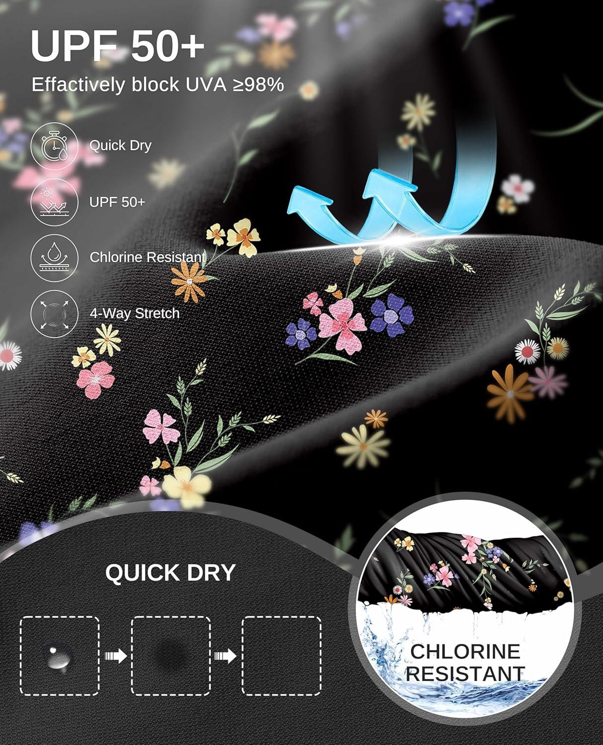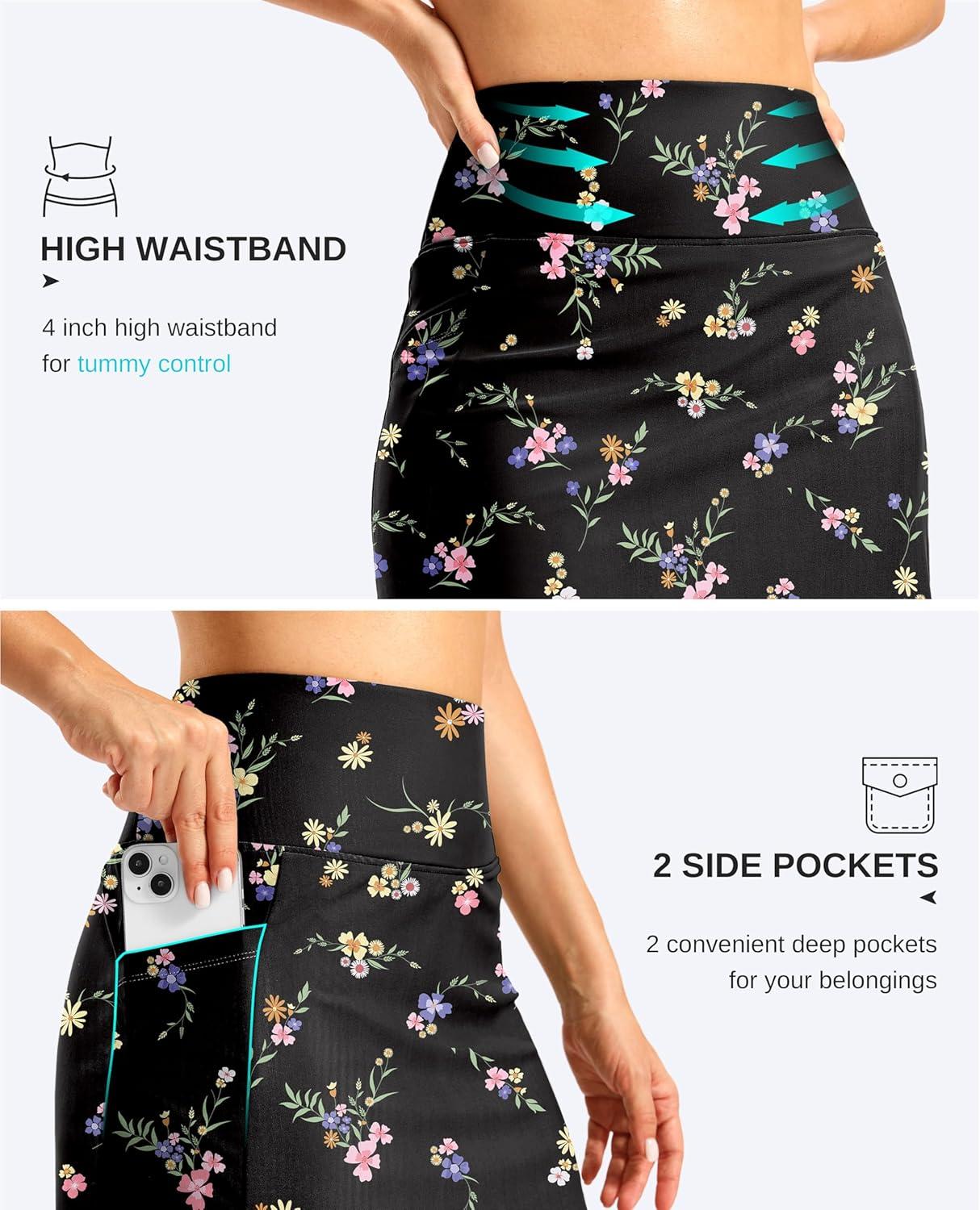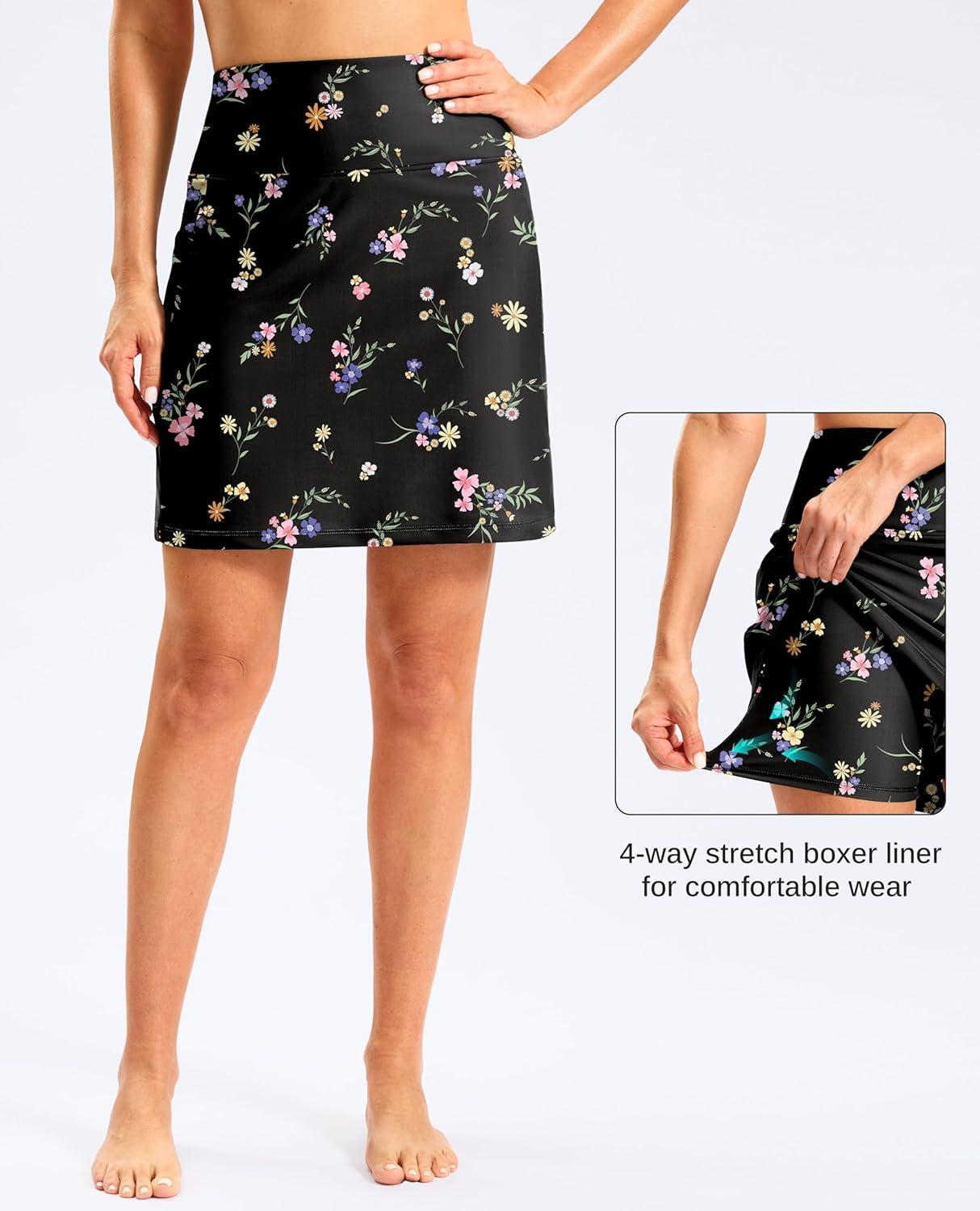 G Gradual Women's 18" Long Swim Skirt with Pockets High Waisted Modest Swimsuit Tummy Control Bathing Suit Bottoms for Women(Black Floral)