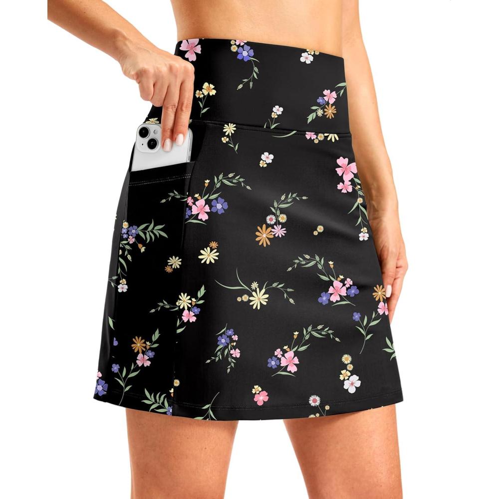 G Gradual Women’s 18″ Long Swim Skirt with Pockets High Waisted Modest Swimsuit Tummy Control Bathing Suit Bottoms for Women(Black Floral)