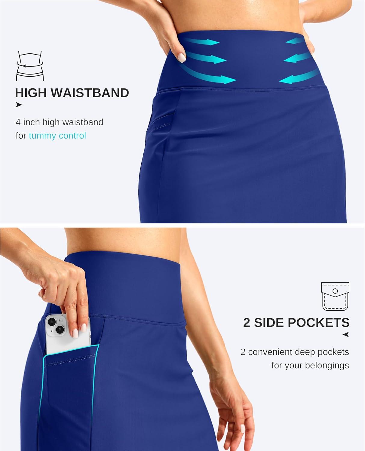 G Gradual Women’s 18″ Long Swim Skirt with Pockets High Waisted Modest Swimsuit Tummy Control Bathing Suit Bottoms for Women(Deep Blue)
