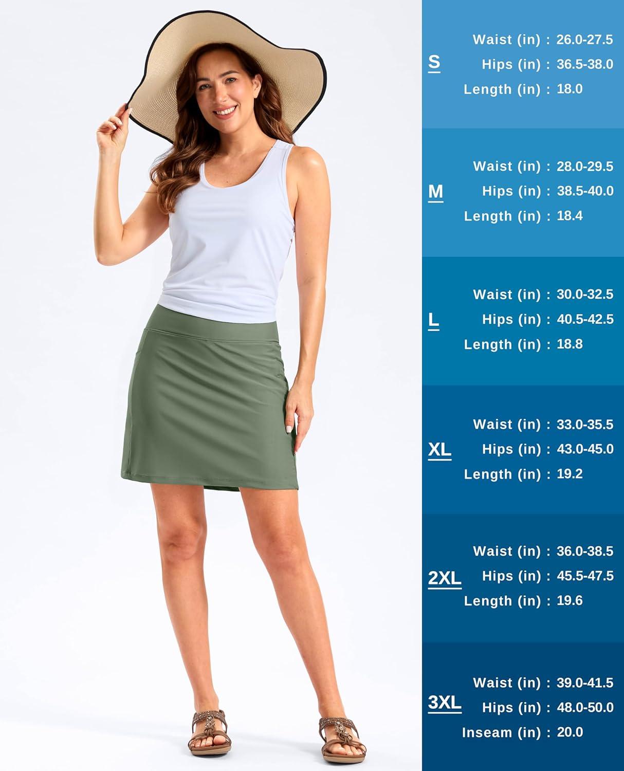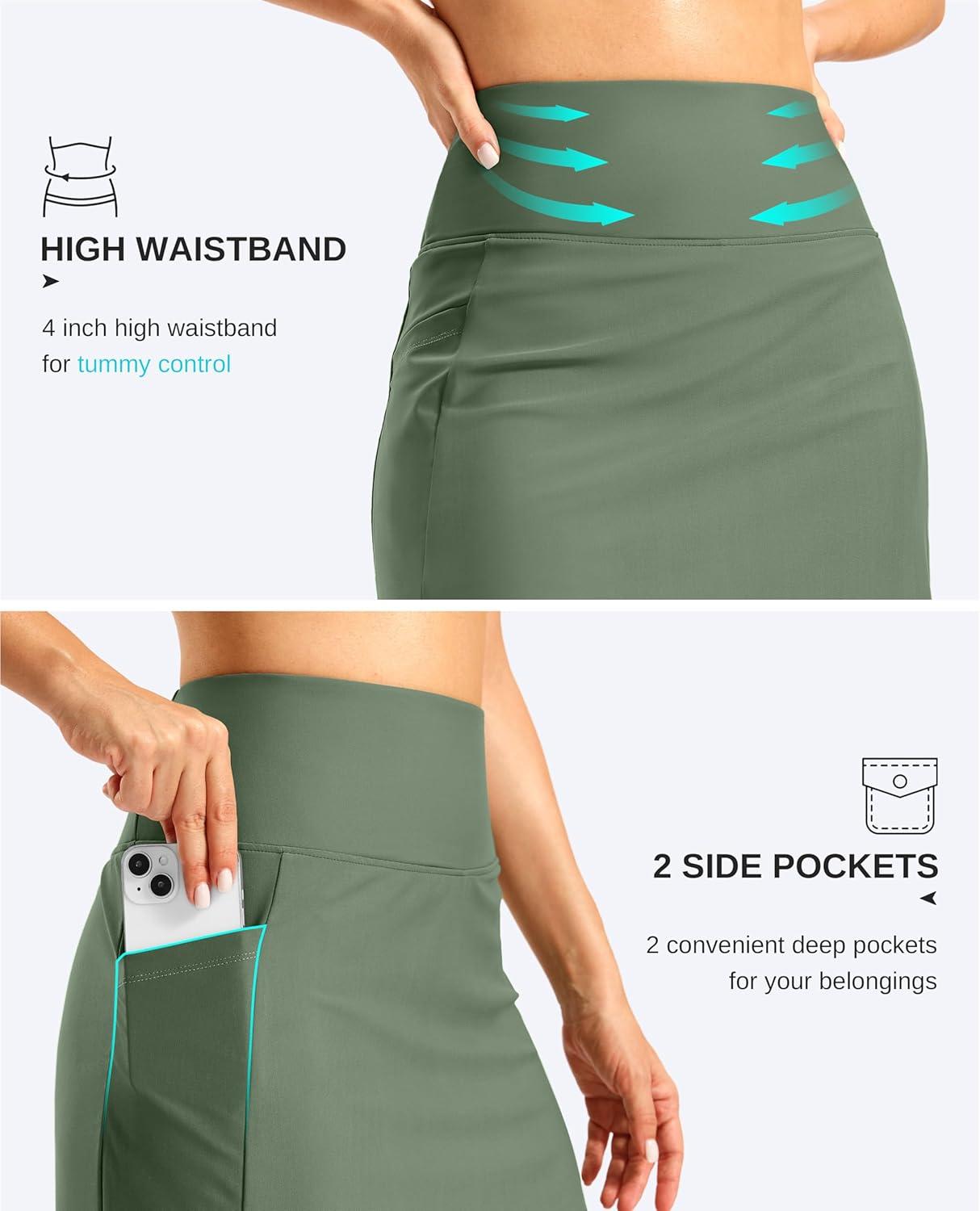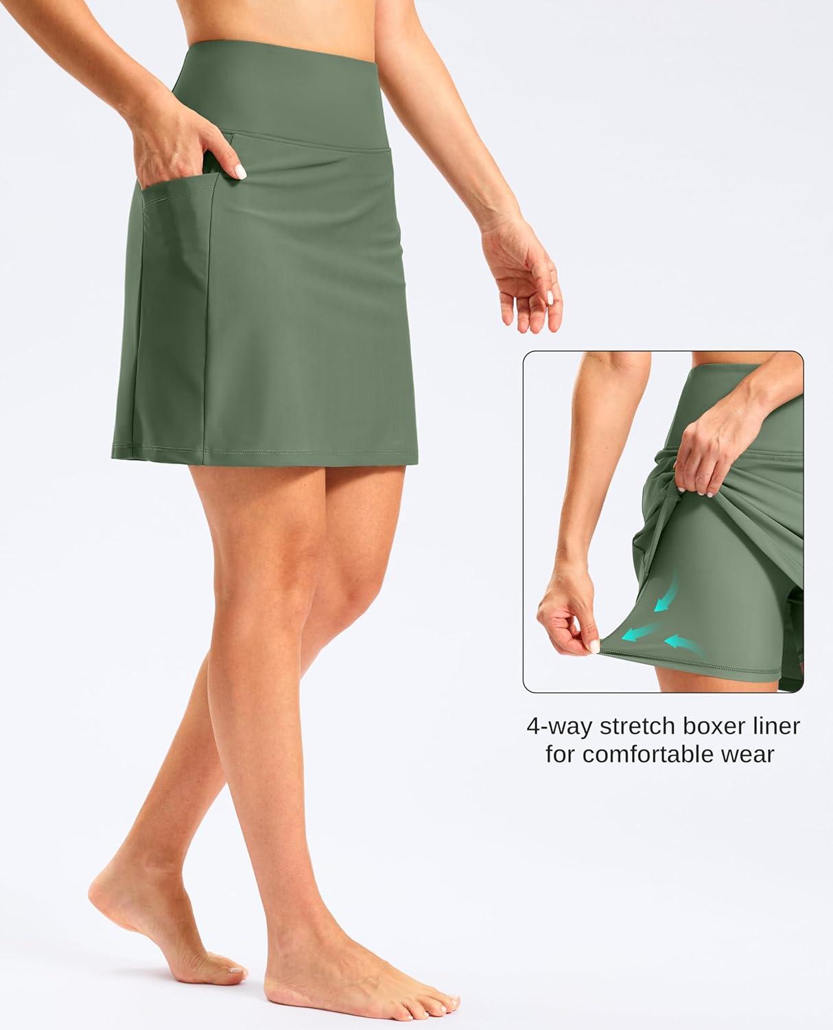 G Gradual Women's 18" Long Swim Skirt with Pockets High Waisted Modest Swimsuit Tummy Control Bathing Suit Bottoms for Women(Green)