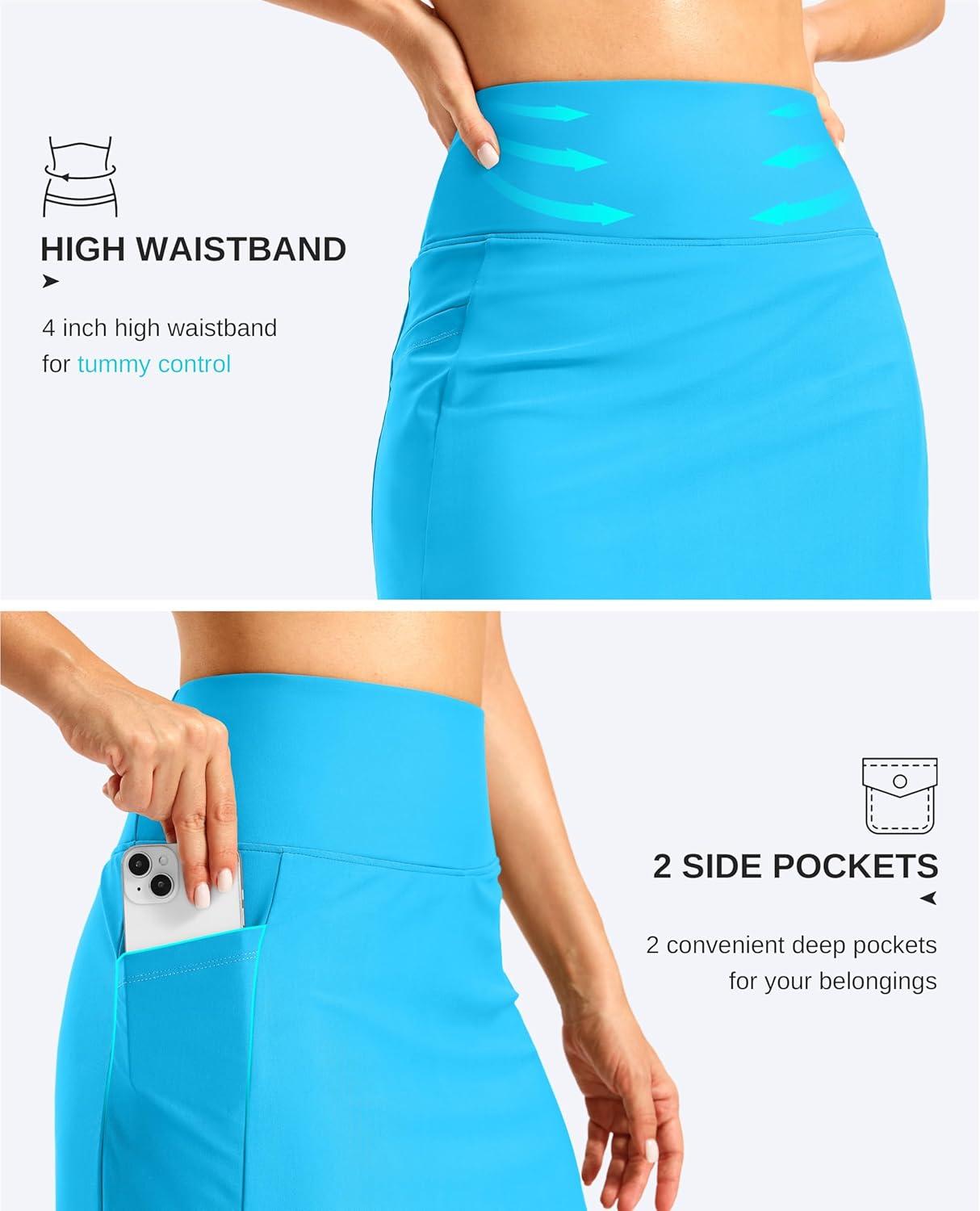 G Gradual Women’s 18″ Long Swim Skirt with Pockets High Waisted Modest Swimsuit Tummy Control Bathing Suit Bottoms for Women(Sky Blue)