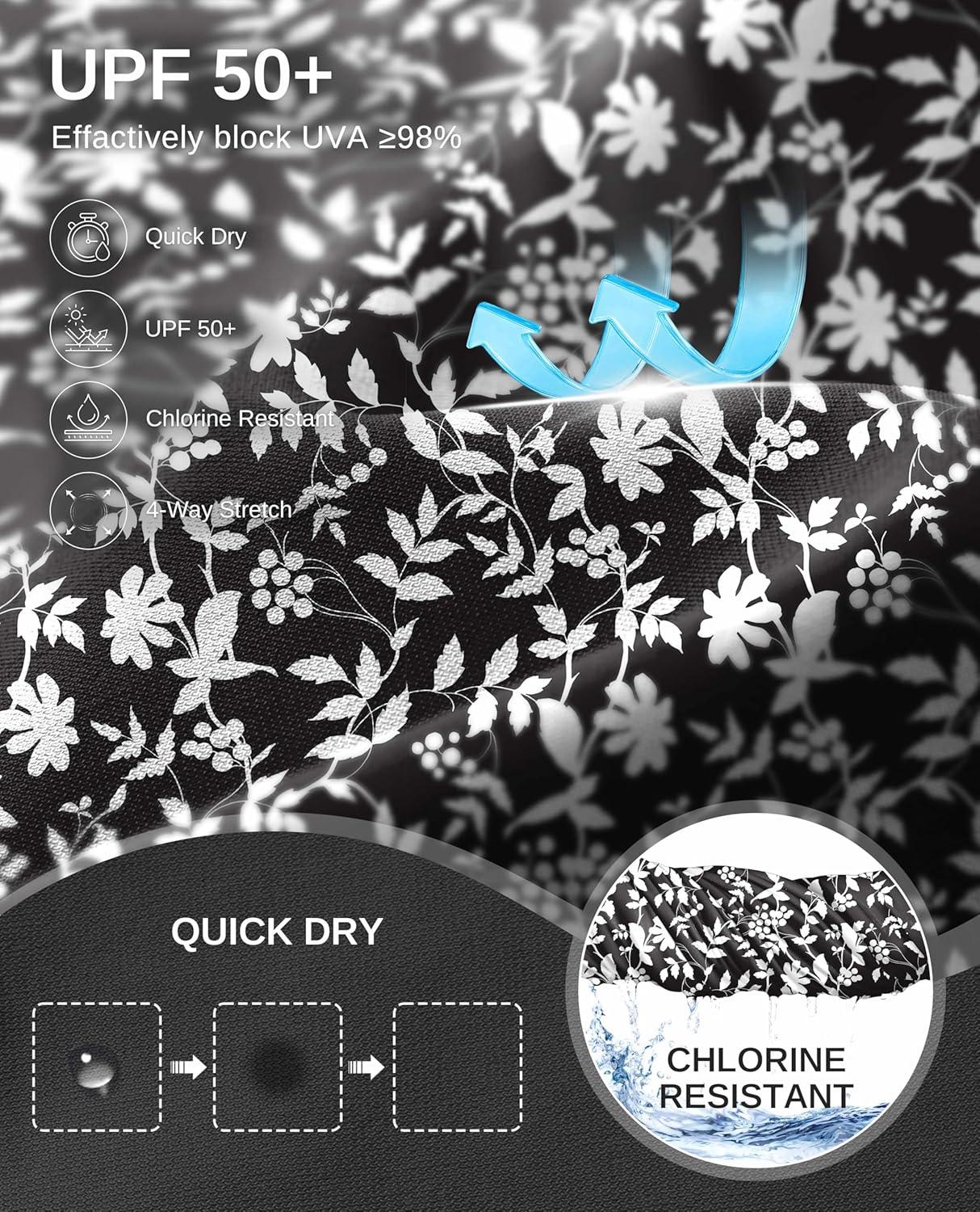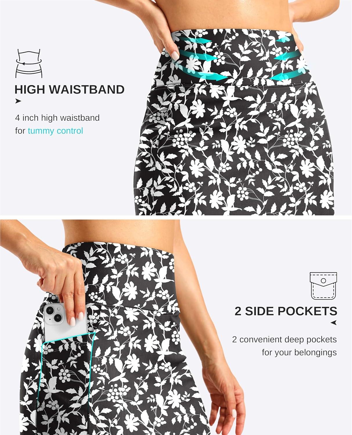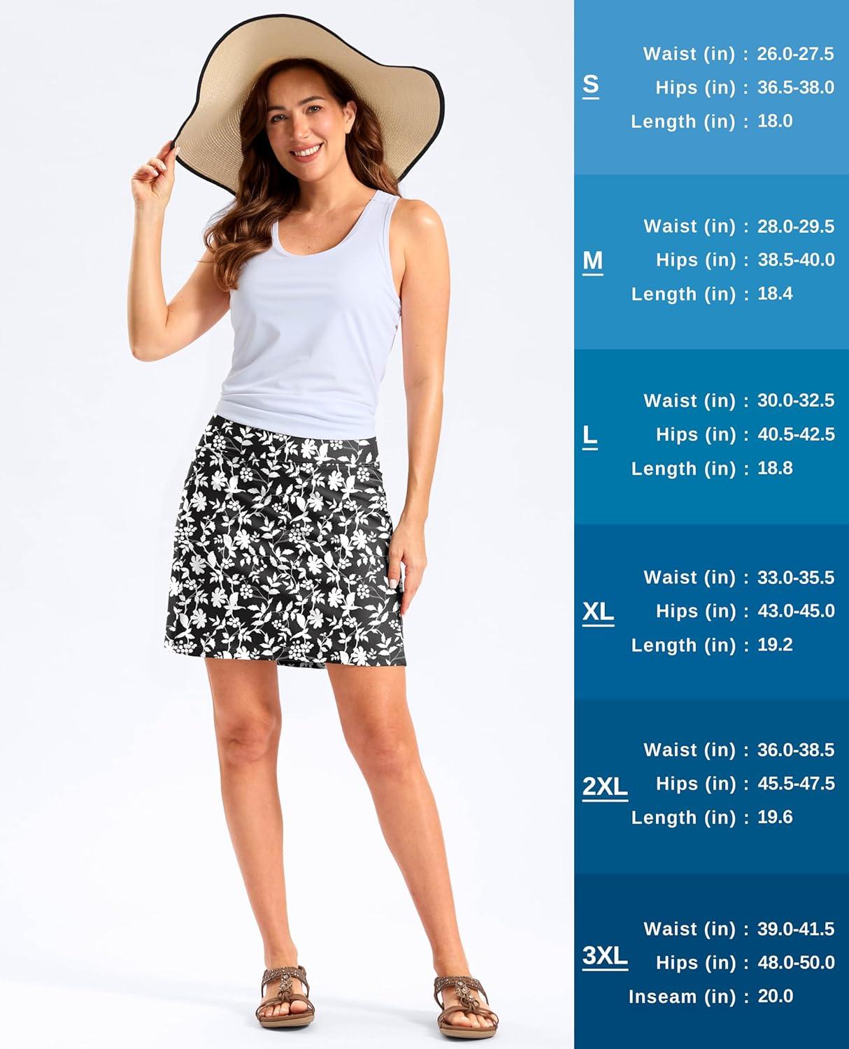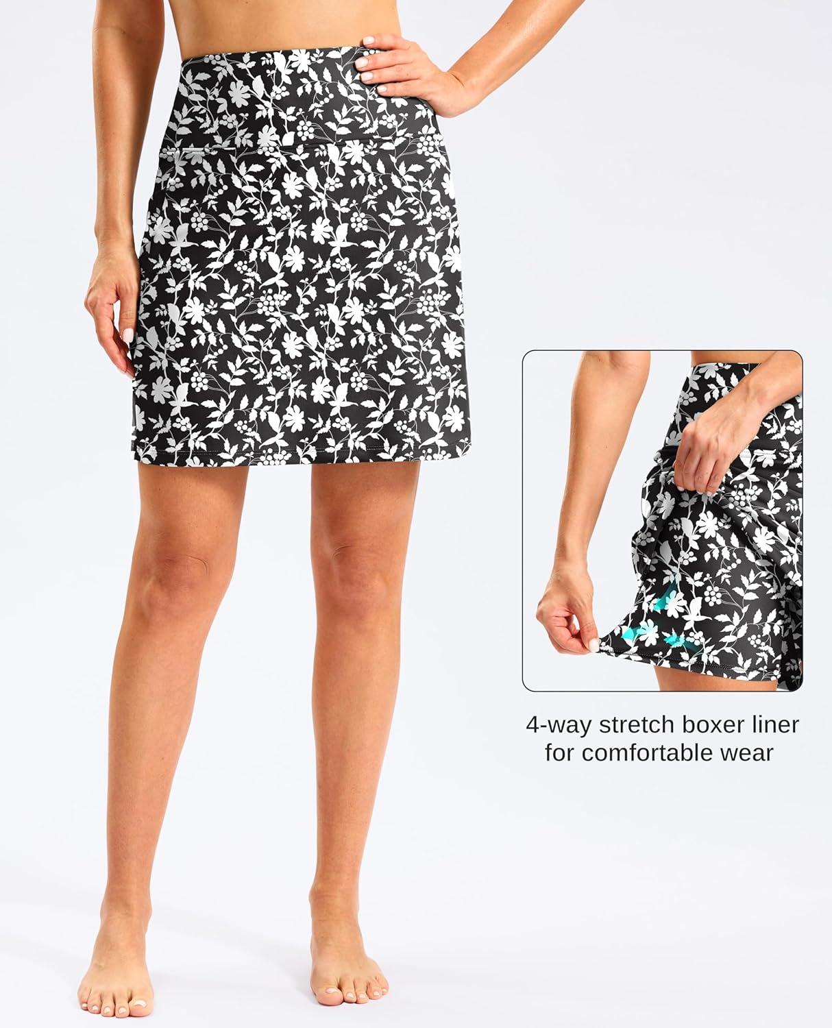G Gradual Women’s 18″ Long Swim Skirt with Pockets High Waisted Modest Swimsuit Tummy Control Bathing Suit Bottoms for Women(White Flower)