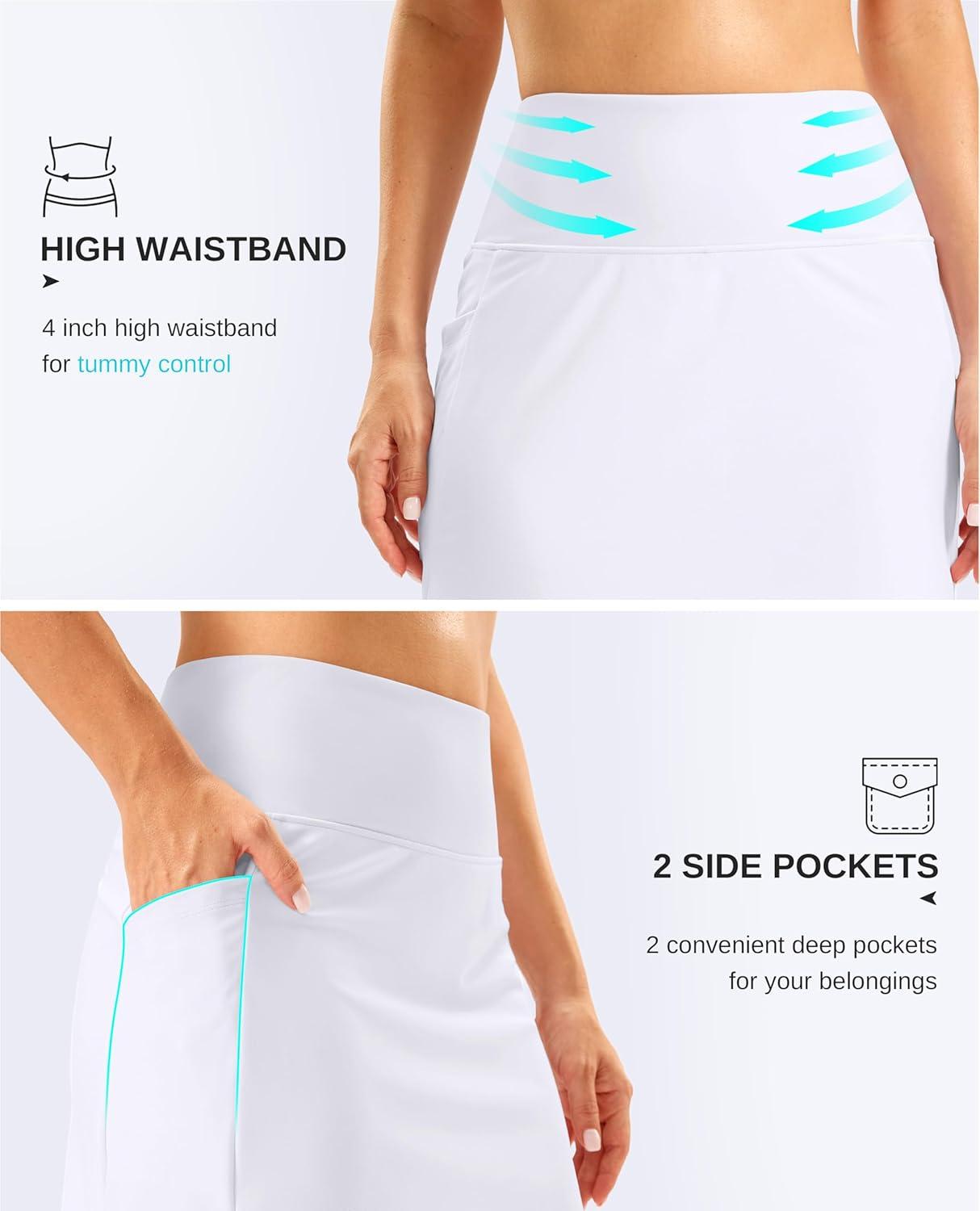 G Gradual Women’s 18″ Long Swim Skirt with Pockets High Waisted Modest Swimsuit Tummy Control Bathing Suit Bottoms for Women(White)