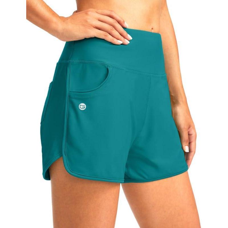 G Gradual Women’s 3″ High Waisted Swim Board Shorts with Pockets Quick Dry Swimsuit Bottoms Bathing Suit for Women with Liner(Aqua Blue)