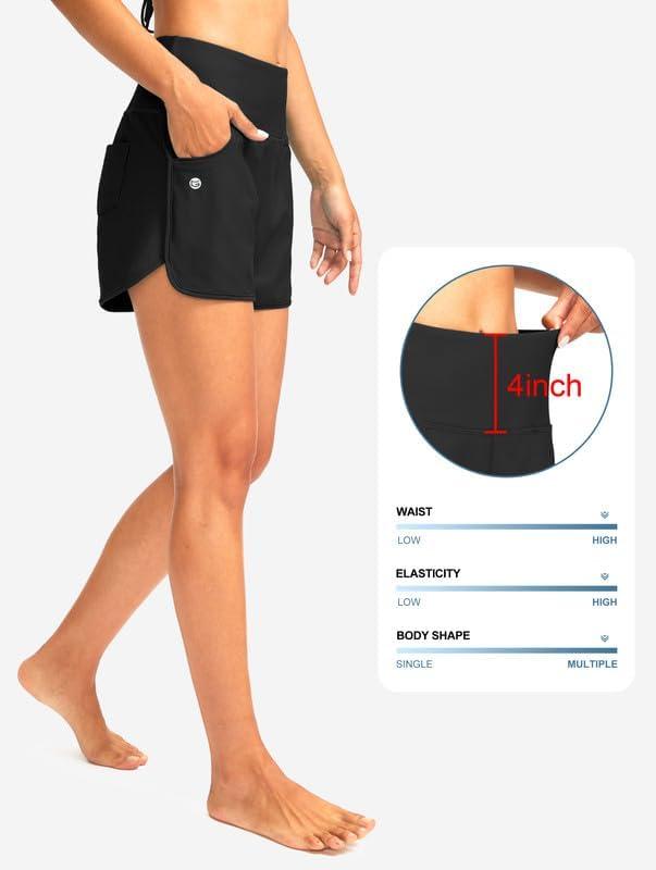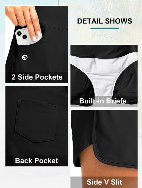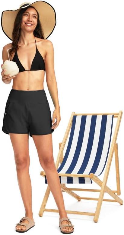 G Gradual Women’s 3″ High Waisted Swim Board Shorts with Pockets Quick Dry Swimsuit Bottoms Bathing Suit for Women with Liner(Black)