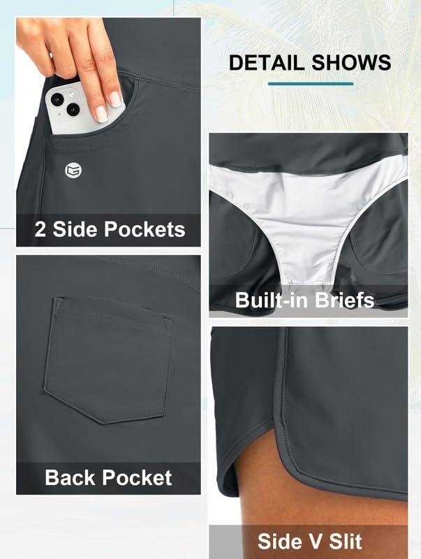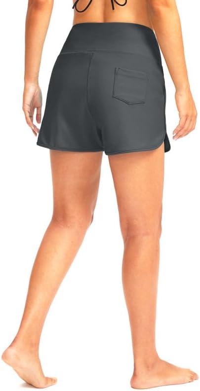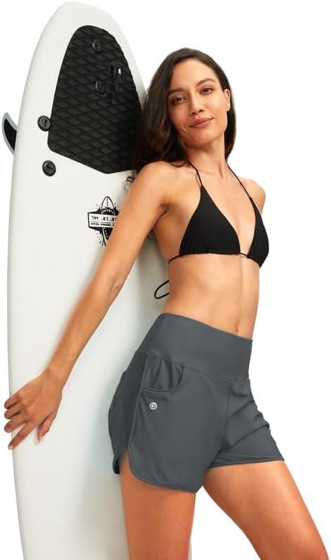 G Gradual Women’s 3″ High Waisted Swim Board Shorts with Pockets Quick Dry Swimsuit Bottoms Bathing Suit for Women with Liner(Dark Grey)