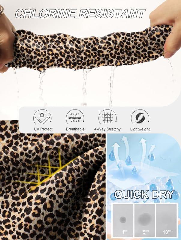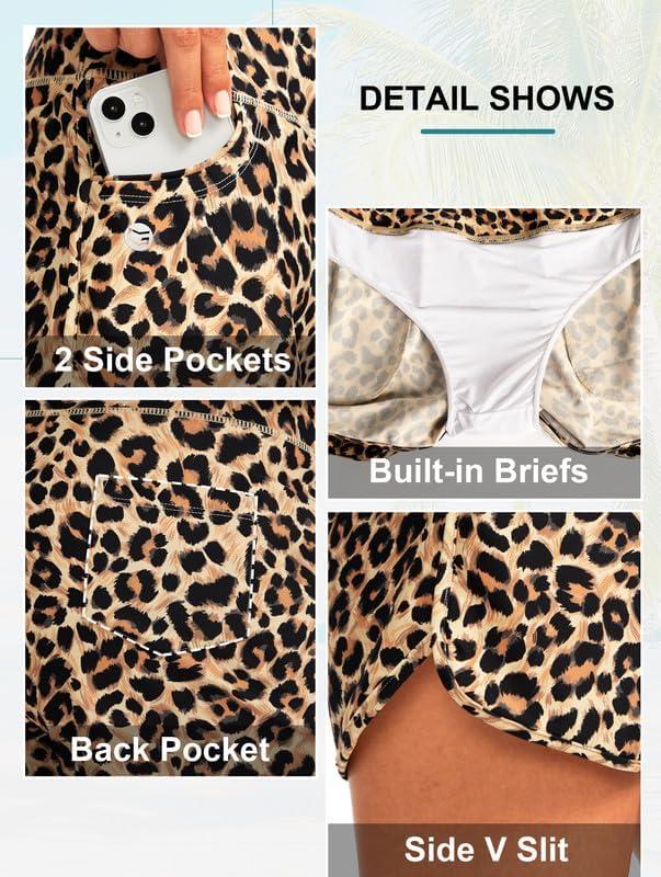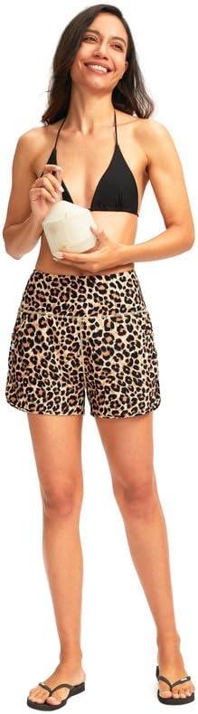 G Gradual Women’s 3″ High Waisted Swim Board Shorts with Pockets Quick Dry Swimsuit Bottoms Bathing Suit for Women with Liner(Leopard)
