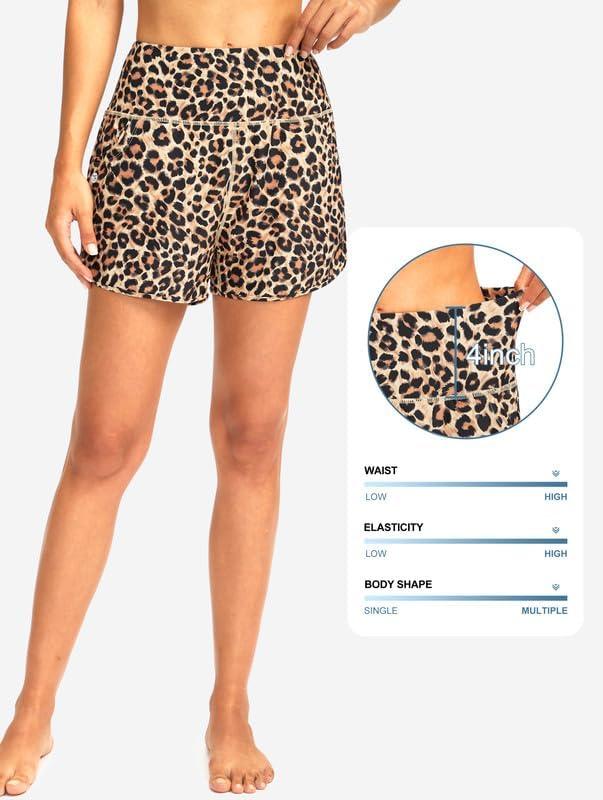G Gradual Women's 3" High Waisted Swim Board Shorts with Pockets Quick Dry Swimsuit Bottoms Bathing Suit for Women with Liner(Leopard)