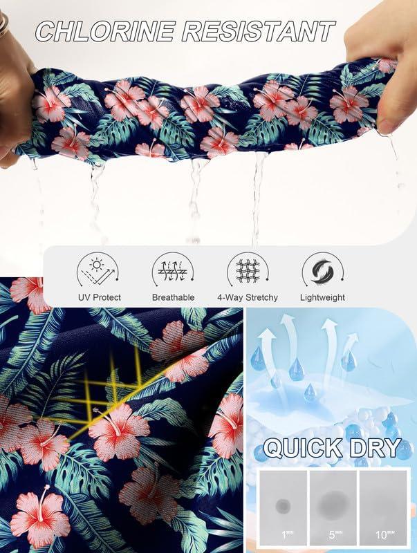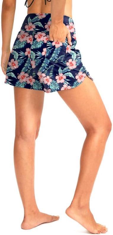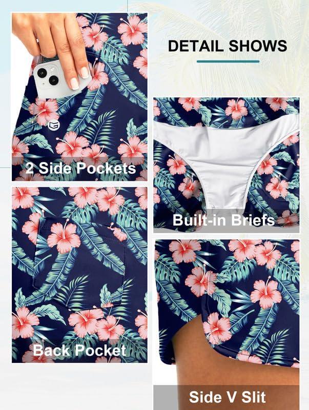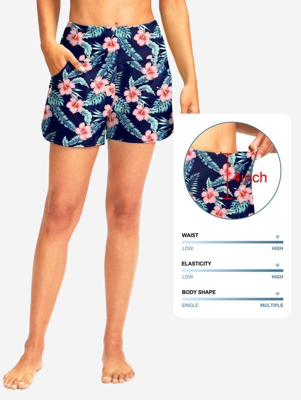 G Gradual Women’s 3″ High Waisted Swim Board Shorts with Pockets Quick Dry Swimsuit Bottoms Bathing Suit for Women with Liner(Navy Flower)