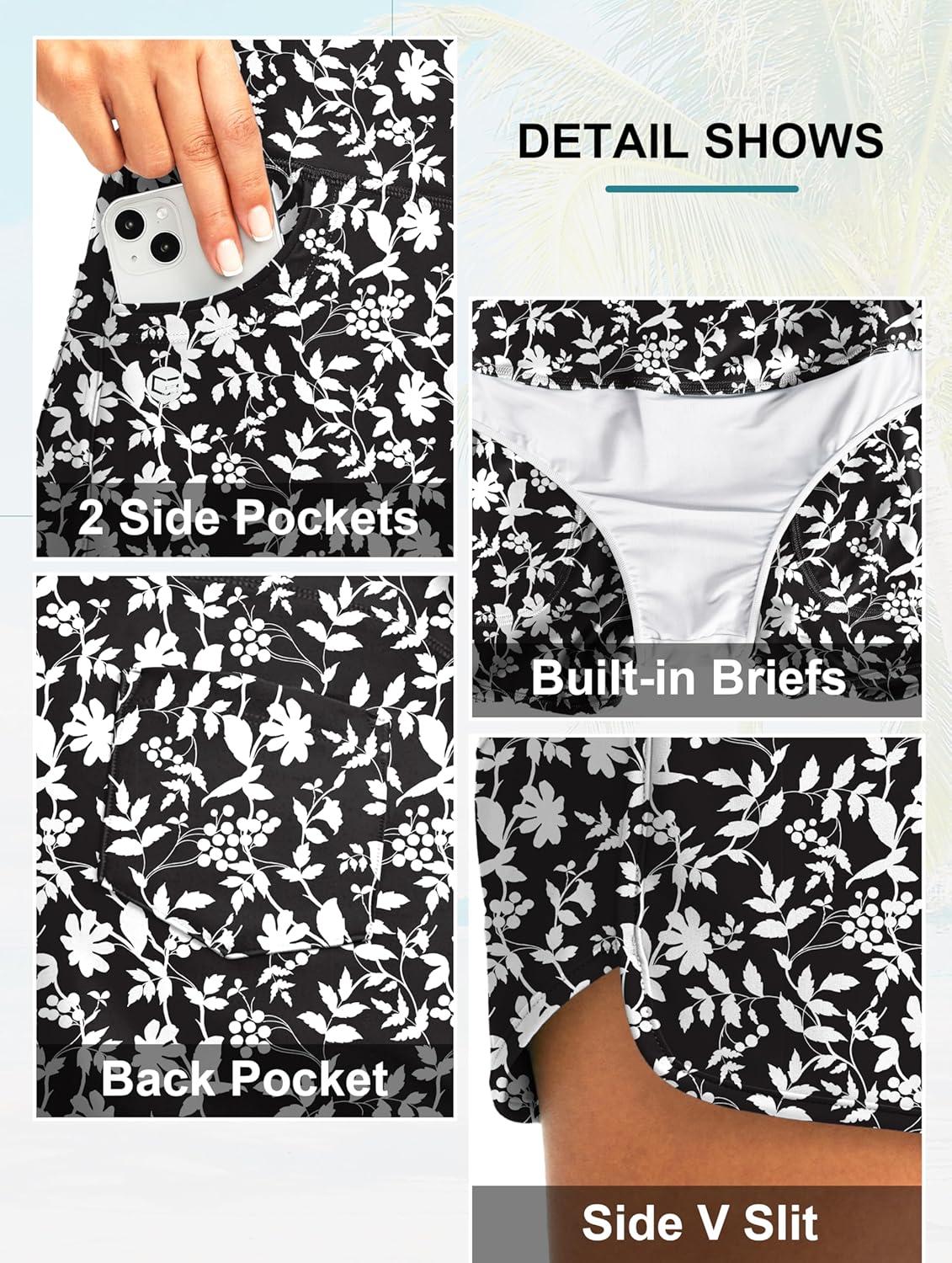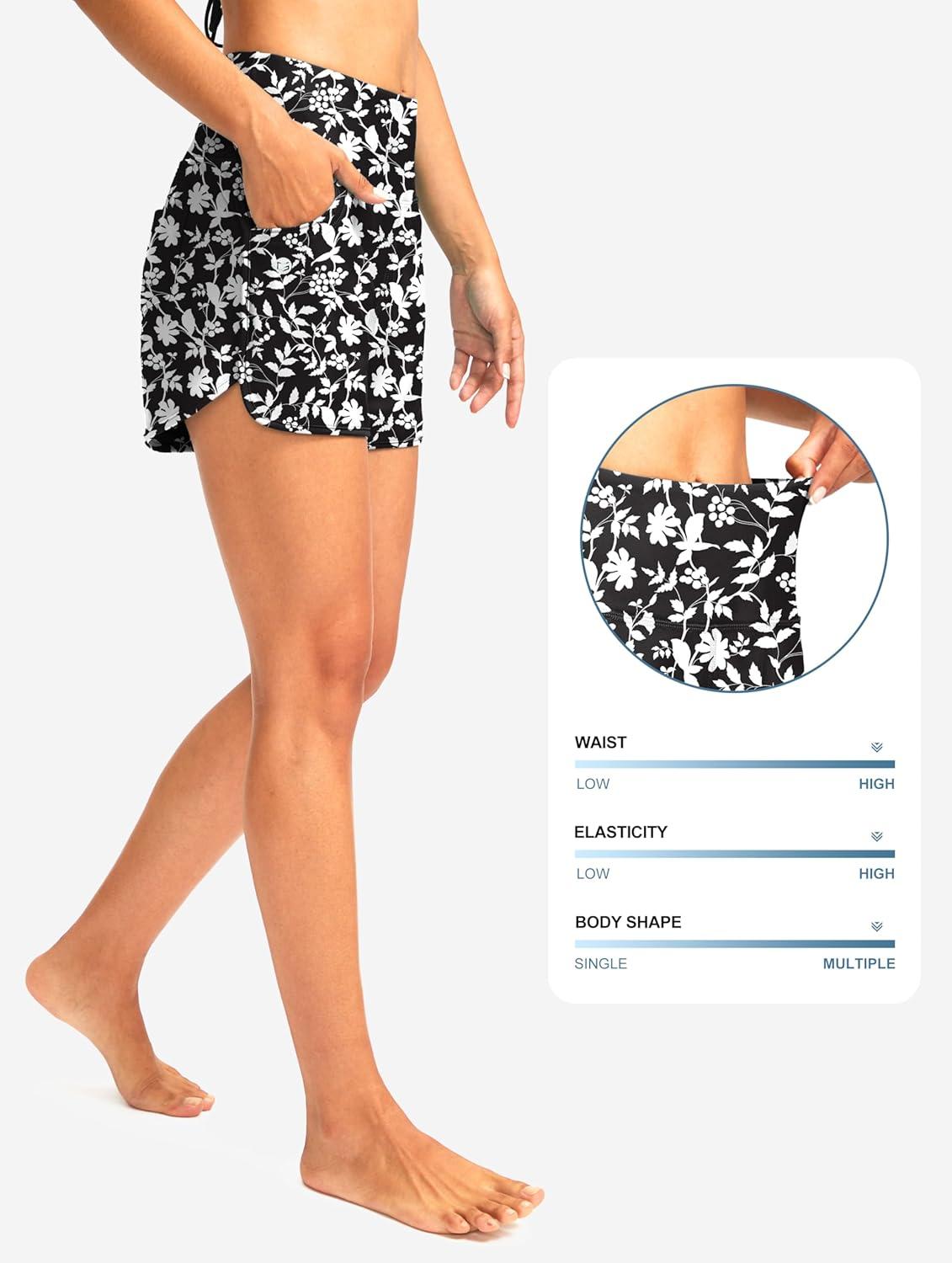 G Gradual Women’s 3″ High Waisted Swim Board Shorts with Pockets Quick Dry Swimsuit Bottoms Bathing Suit for Women with Liner(White Flower)