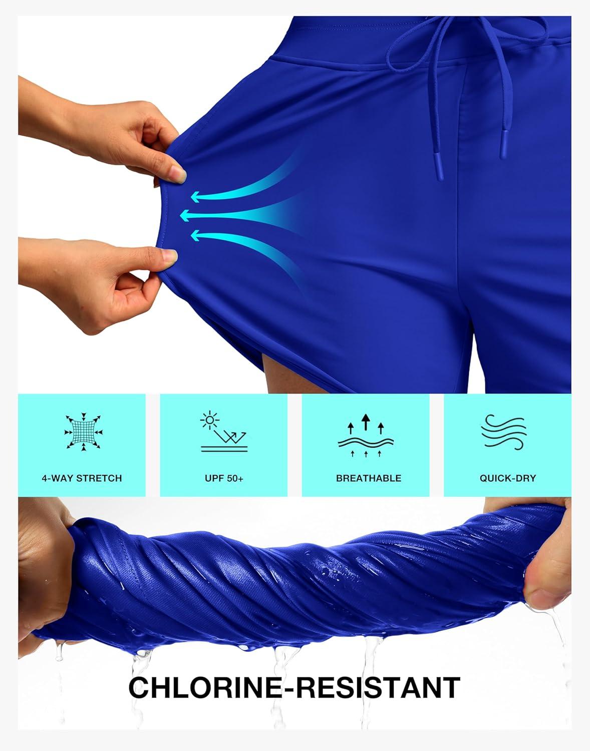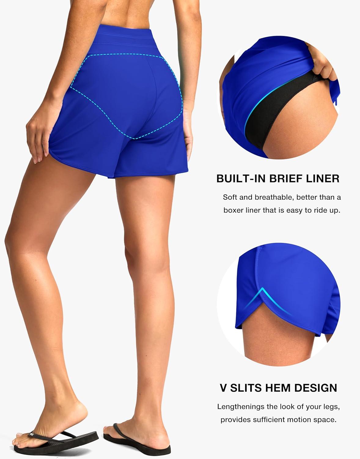 G Gradual Women's 4'' High Waisted Swim Board Shorts Quick Dry Swimming Bathing Suit Bottoms for Women with Pockets Liner(Blue)