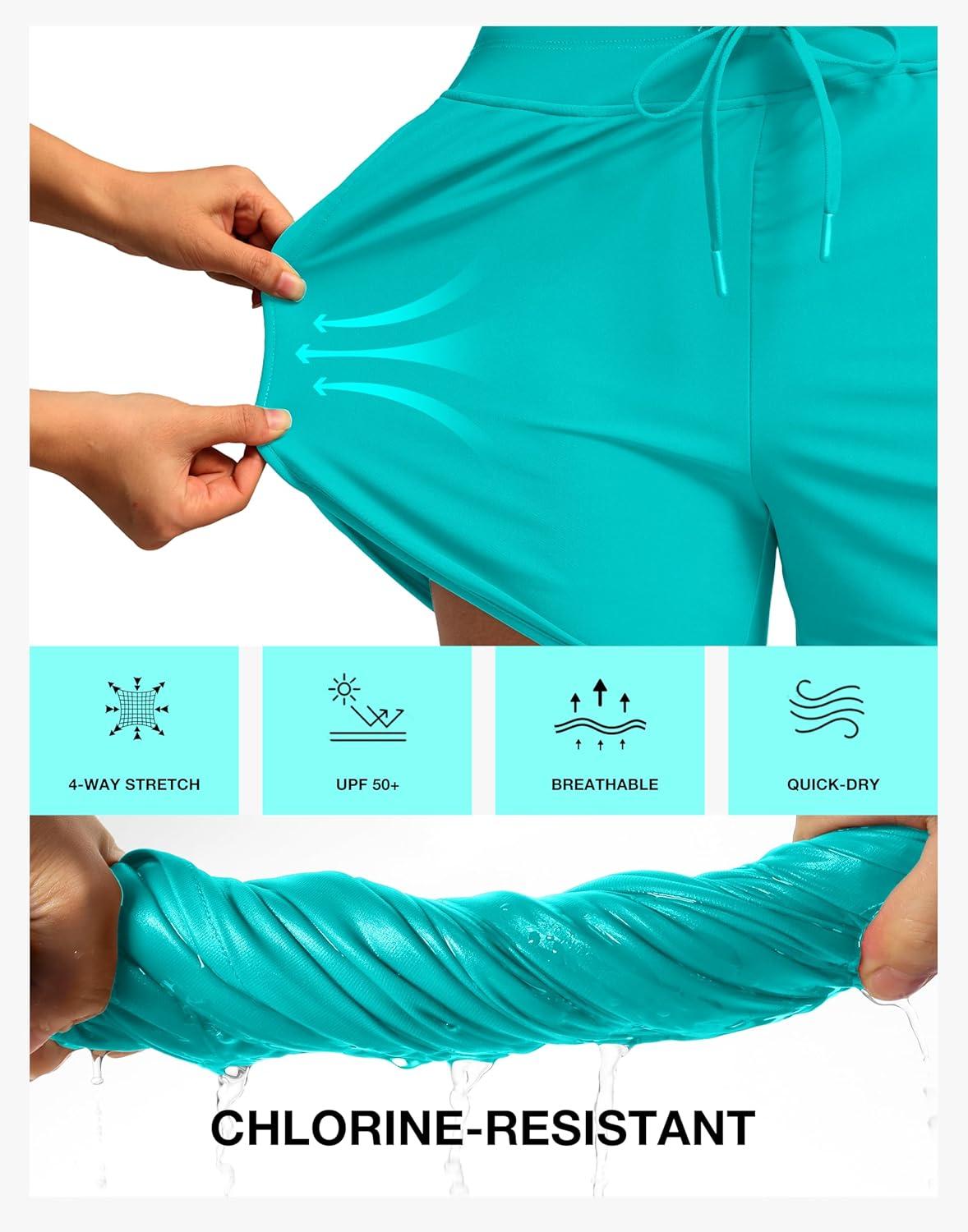 imageG Gradual Womens 4 High Waisted Swim Board Shorts Quick Dry Swimming Bathing Suit Bottoms for Women with Pockets LinerCyan
