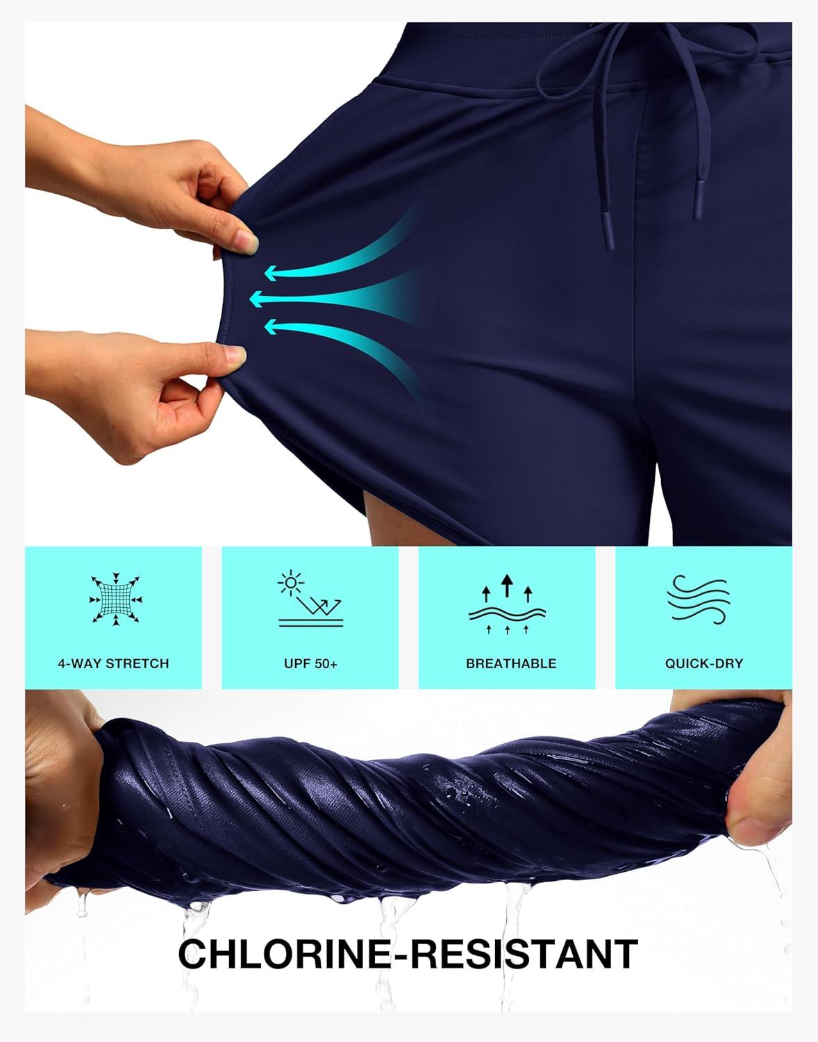 imageG Gradual Womens 4 High Waisted Swim Board Shorts Quick Dry Swimming Bathing Suit Bottoms for Women with Pockets LinerDark Blue