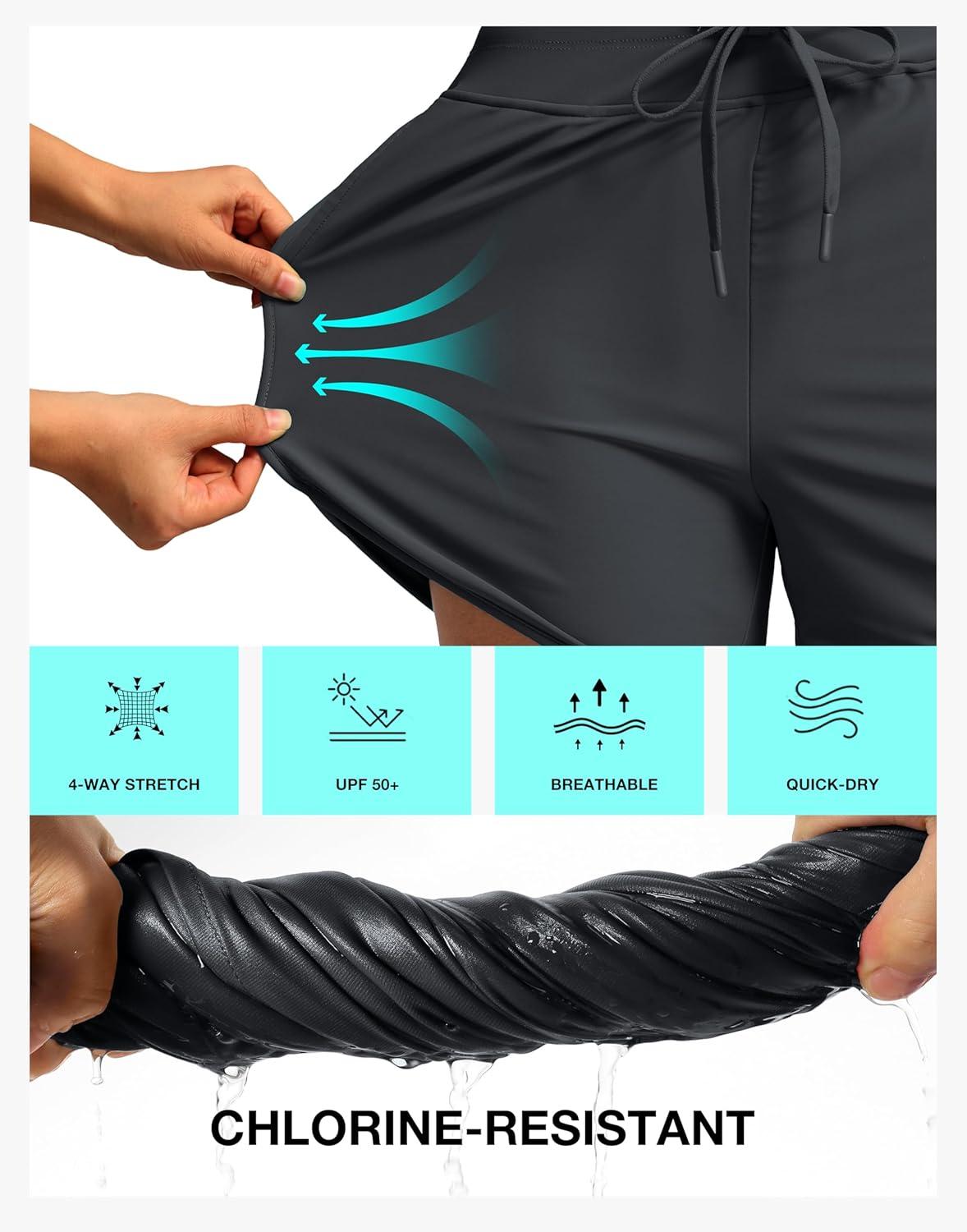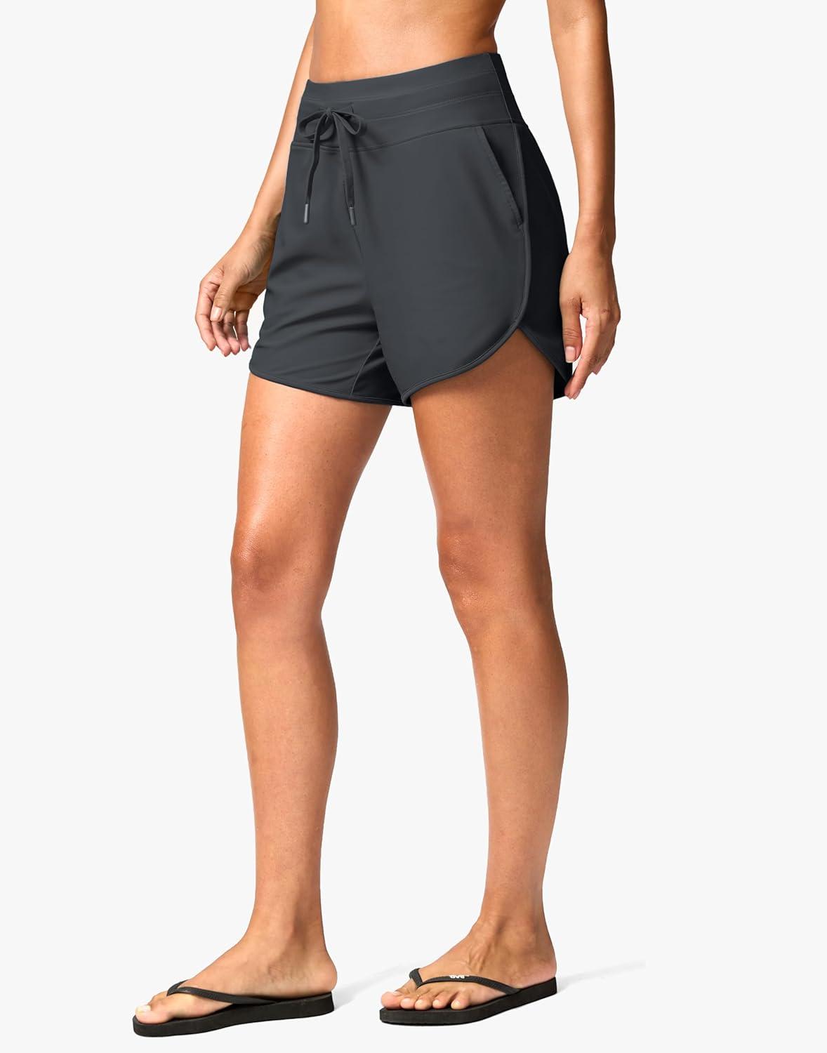 imageG Gradual Womens 4 High Waisted Swim Board Shorts Quick Dry Swimming Bathing Suit Bottoms for Women with Pockets LinerDark Grey
