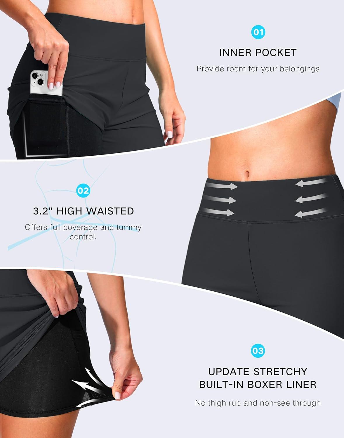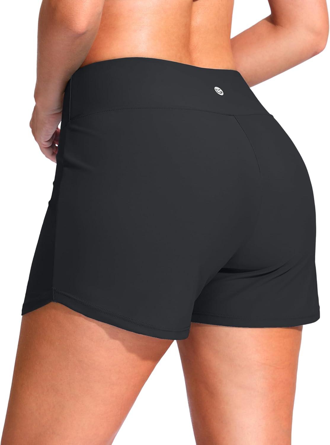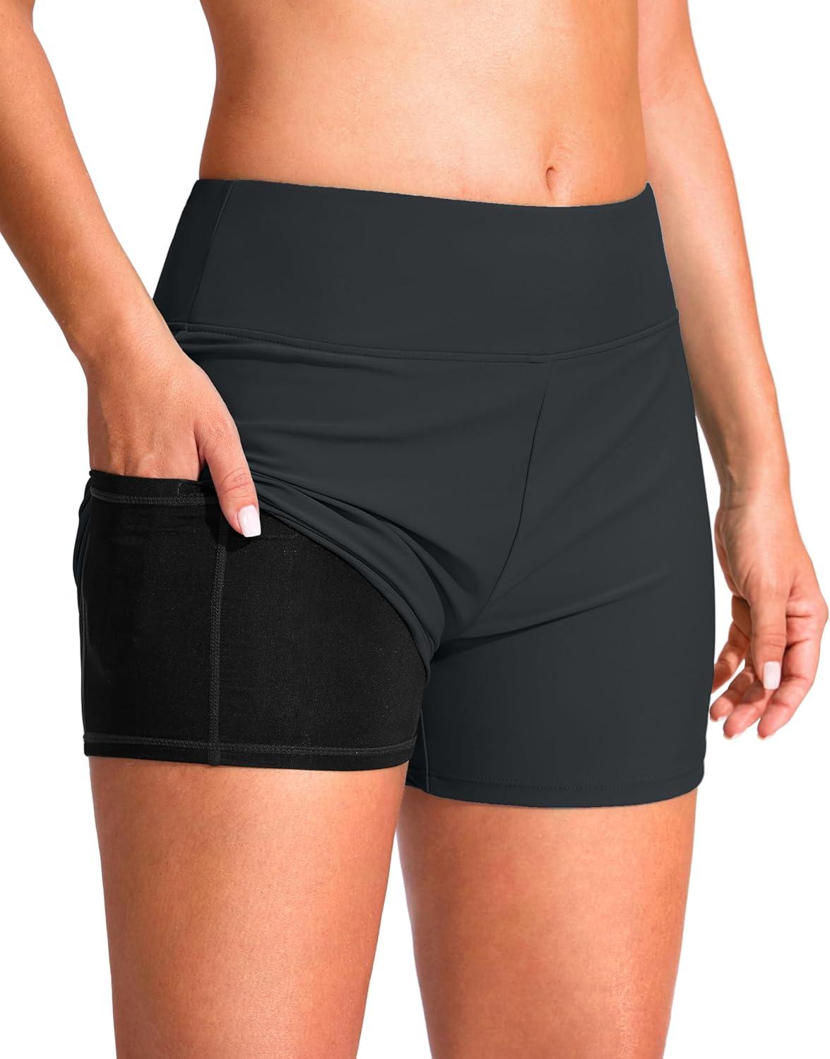 G Gradual Women’s 4″ Swim Board Shorts High Waisted Tummy Control Swimsuit Bathing Suit Bottoms for Women with Liner Pocket(Dark Grey)