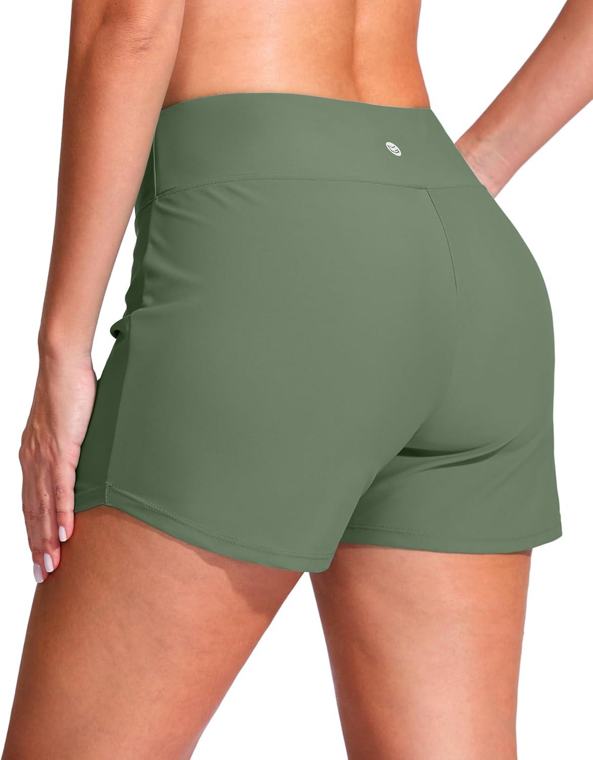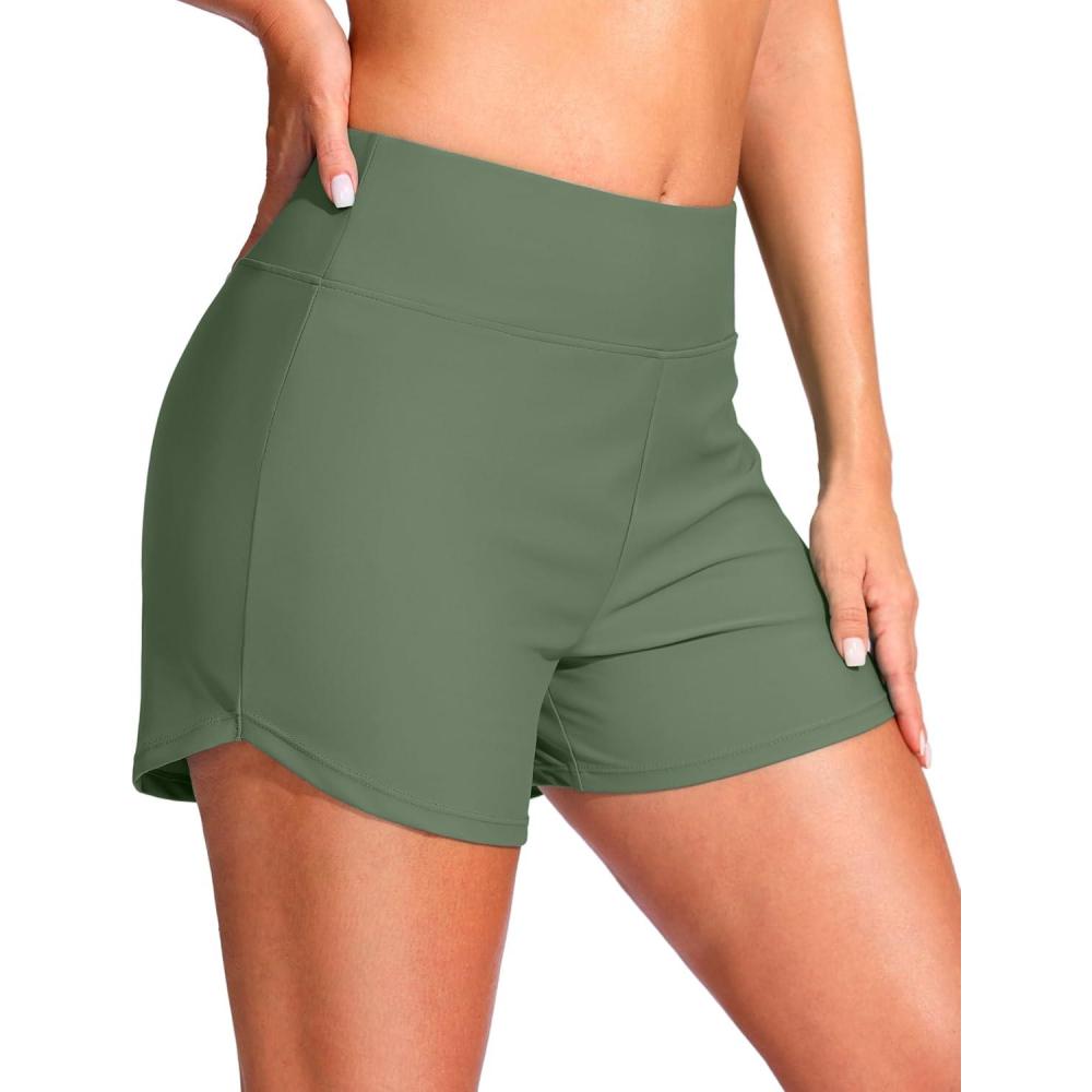 G Gradual Women's 4" Swim Board Shorts High Waisted Tummy Control Swimsuit Bathing Suit Bottoms for Women with Liner Pocket(Sage)