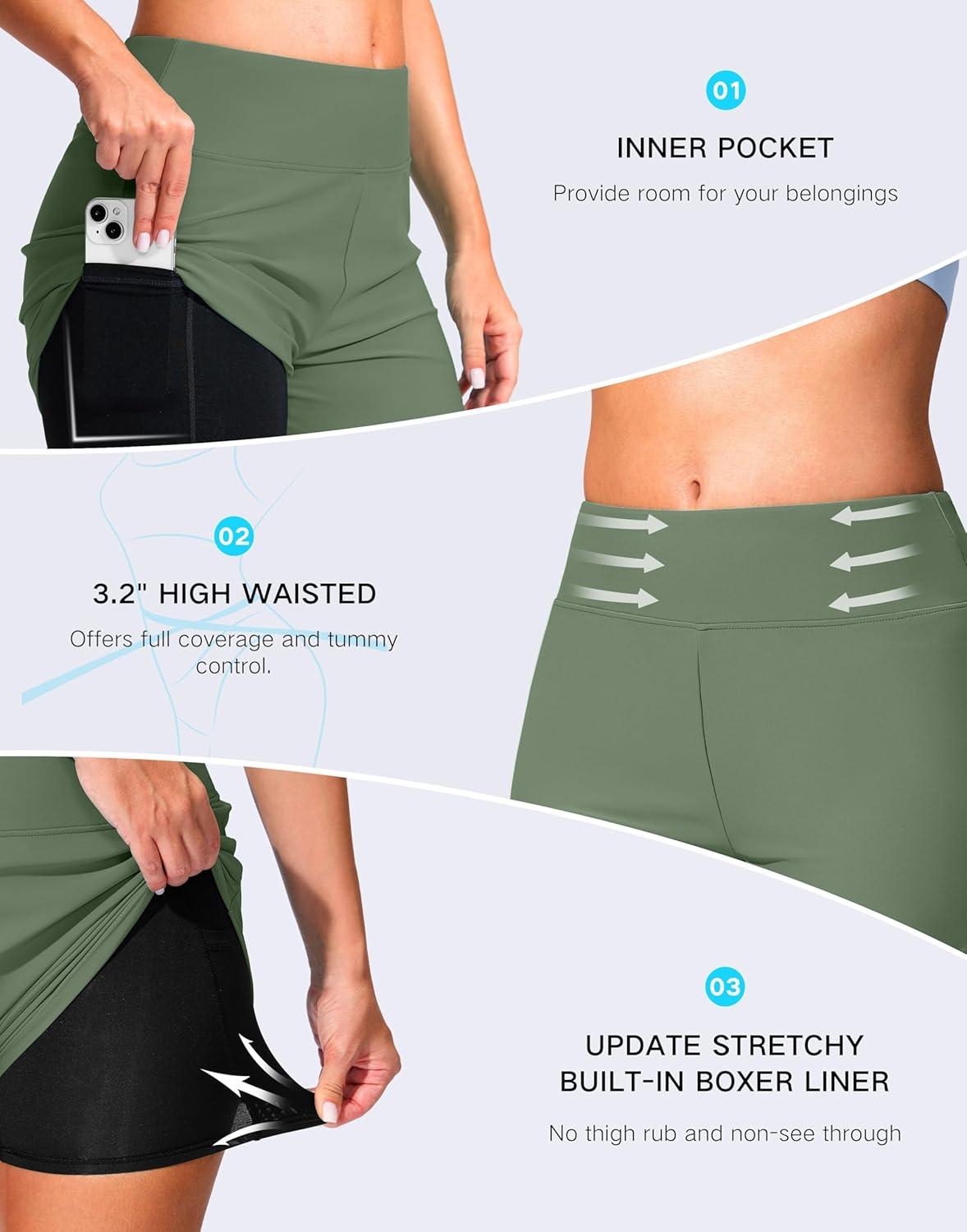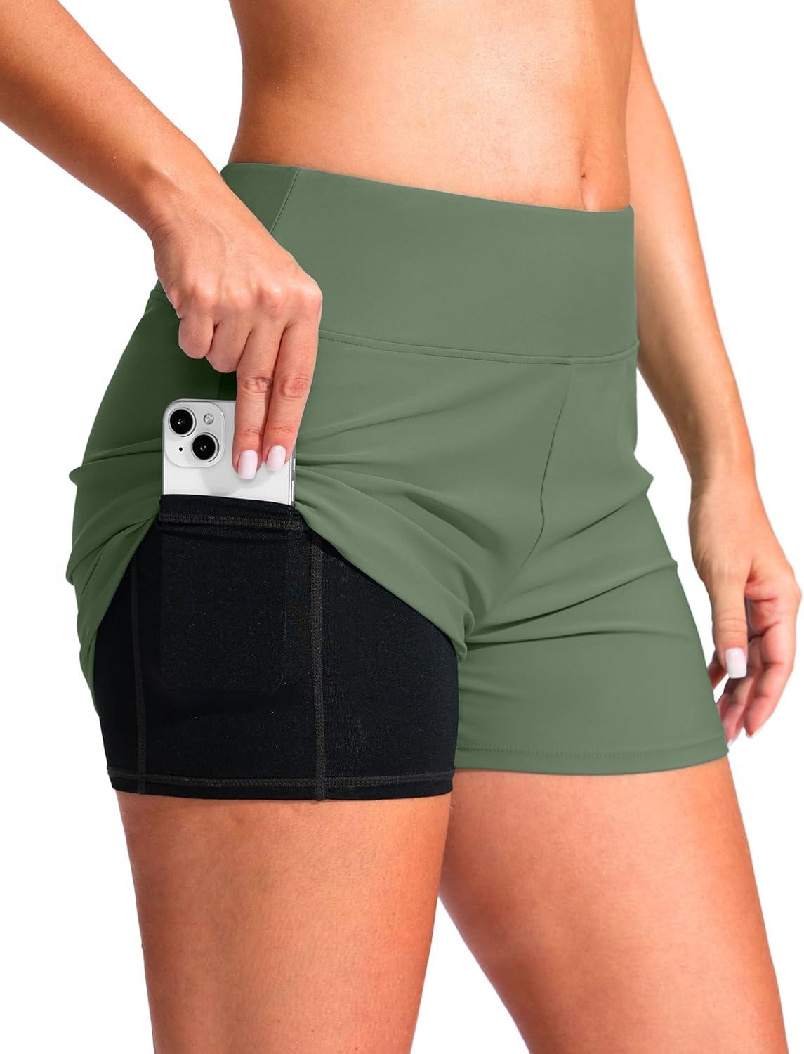 G Gradual Women’s 4″ Swim Board Shorts High Waisted Tummy Control Swimsuit Bathing Suit Bottoms for Women with Liner Pocket(Sage)