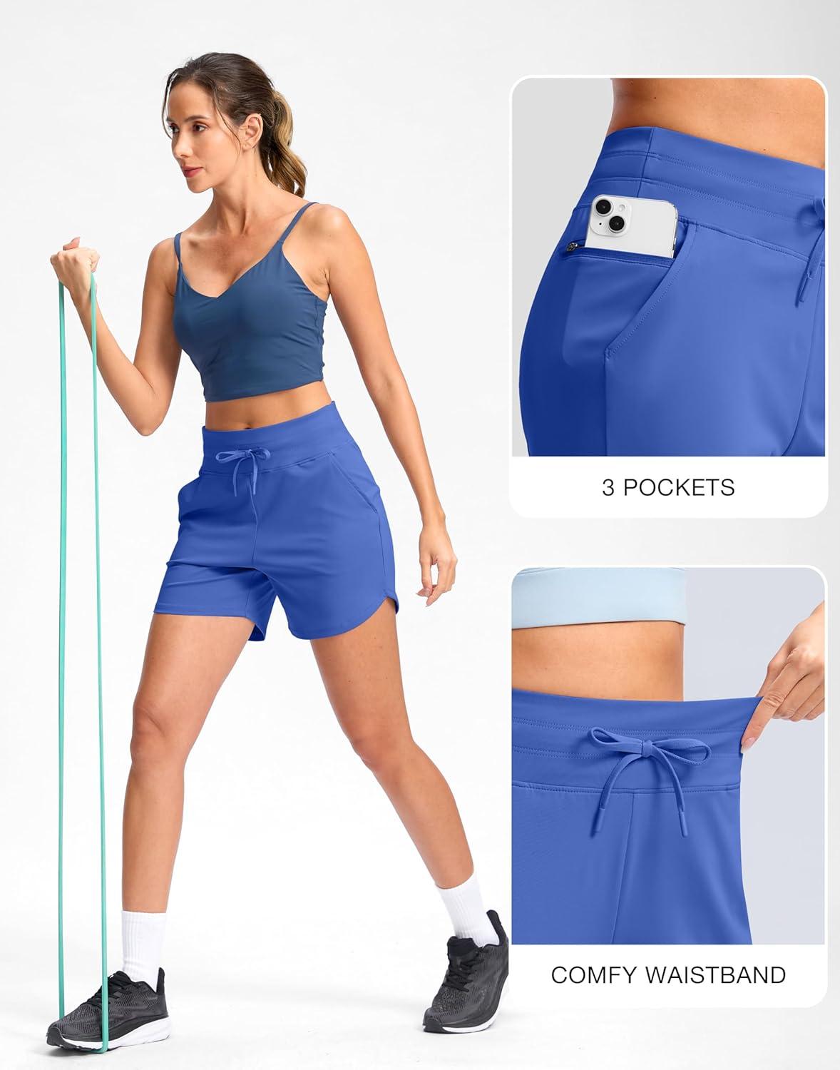 G Gradual Women's 5" Athletic Running Shorts with Zip Pockets Stretchy Quick Dry High Waisted for Workout Gym Hiking(Royal Blue)