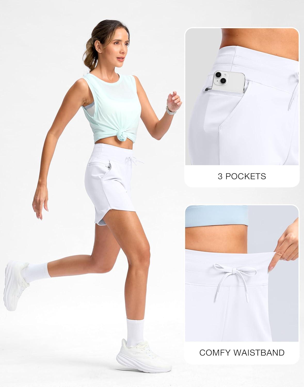 G Gradual Women’s 5″ Athletic Running Shorts with Zip Pockets Stretchy Quick Dry High Waisted for Workout Gym Hiking(White)