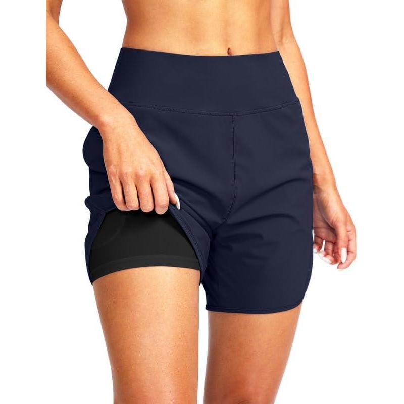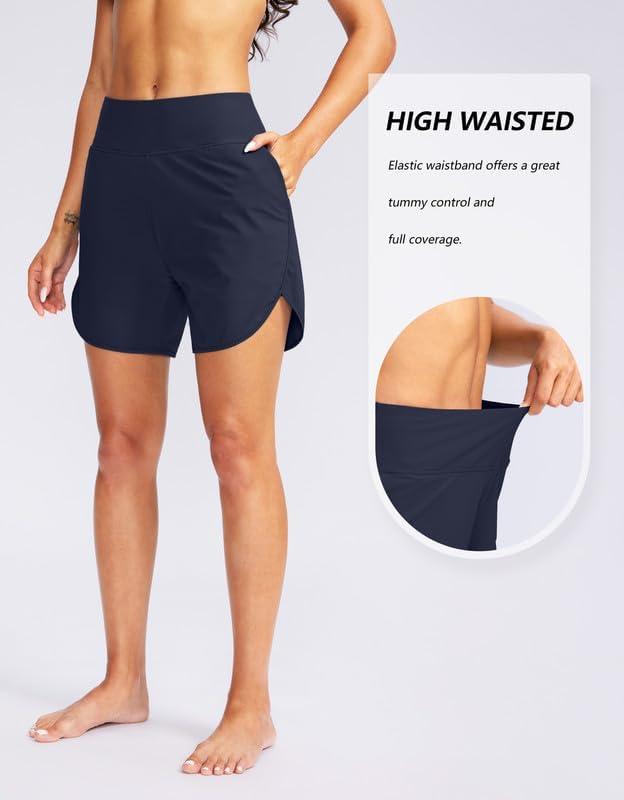 G Gradual Women's 5" High Waisted Swim Board Shorts Quick Dry UPF 50+ Swimming Beach Shorts for Women with Liner Pockets(Navy)