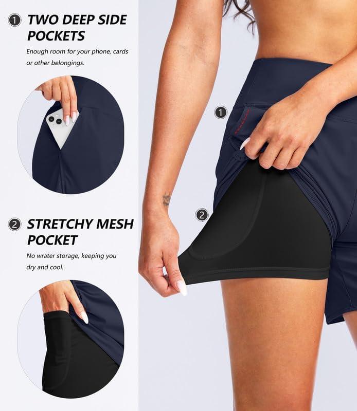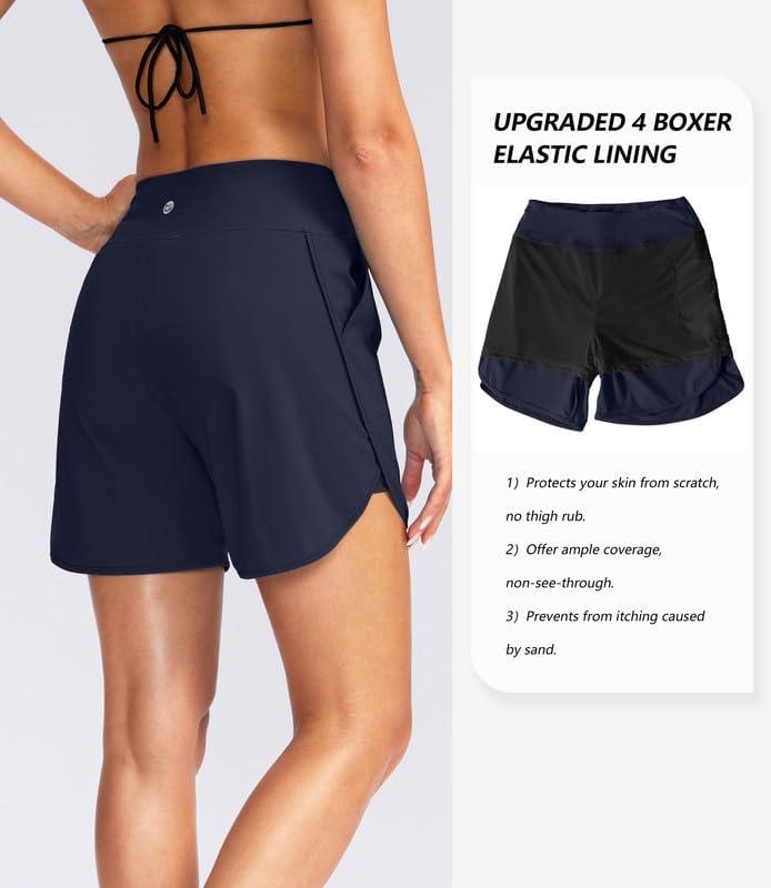 imageG Gradual Womens 5quot High Waisted Swim Board Shorts Quick Dry UPF 50 Swimming Beach Shorts for Women with Liner PocketsNavy