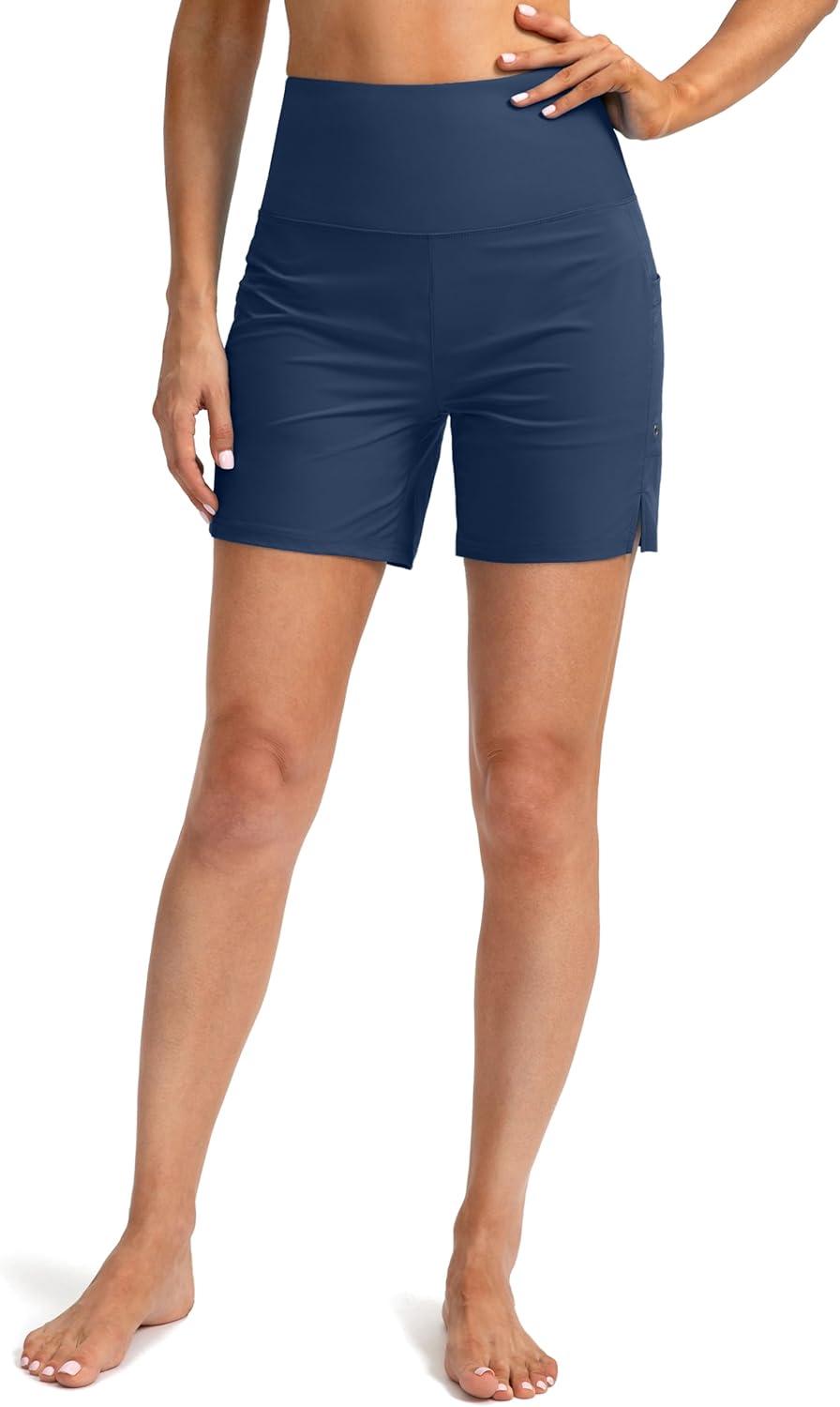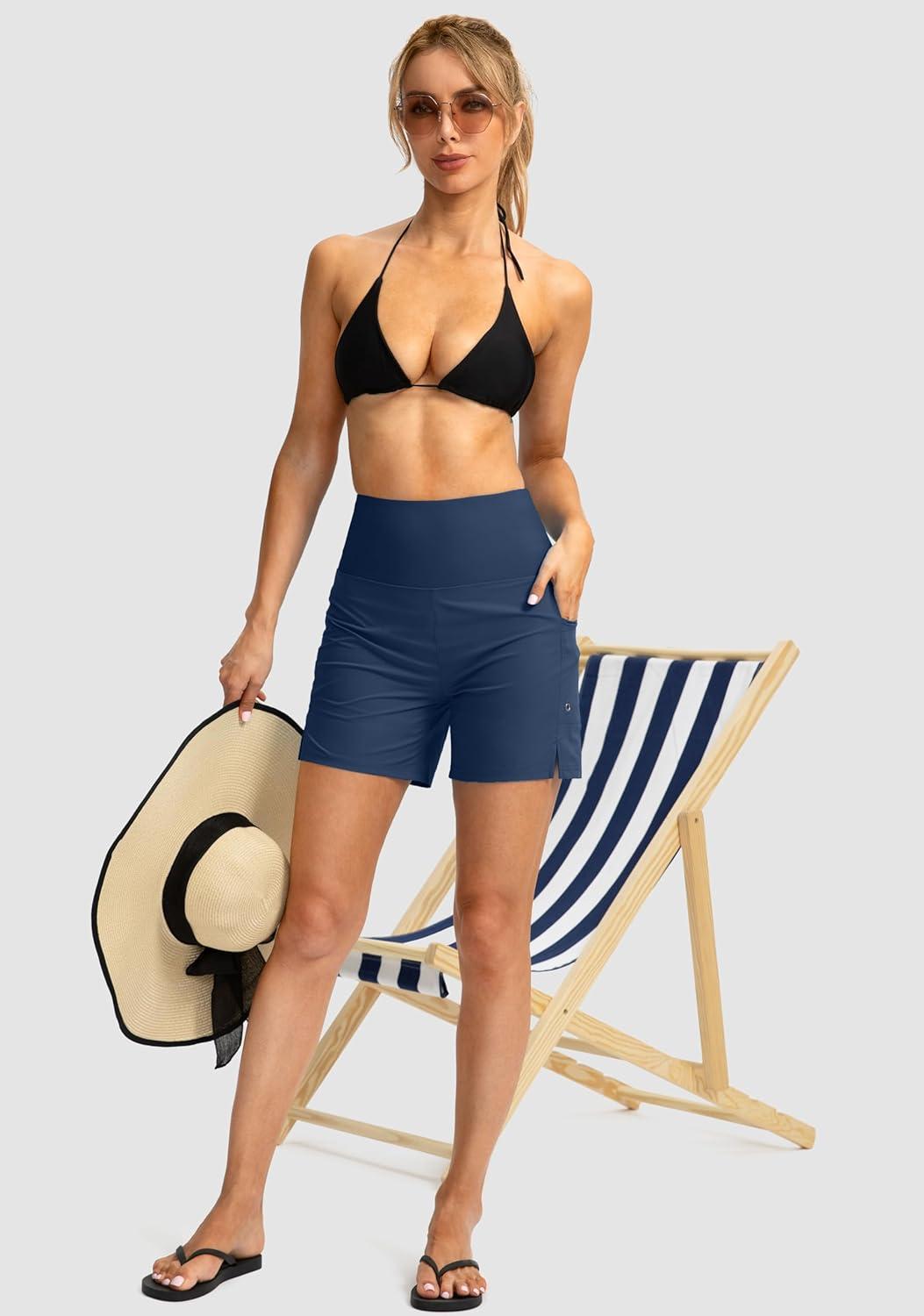 imageG Gradual Womens 5 High Waisted Swim Board Shorts with Phone Pockets UPF 50 Quick Dry Beach Shorts for Women with LinerNavy