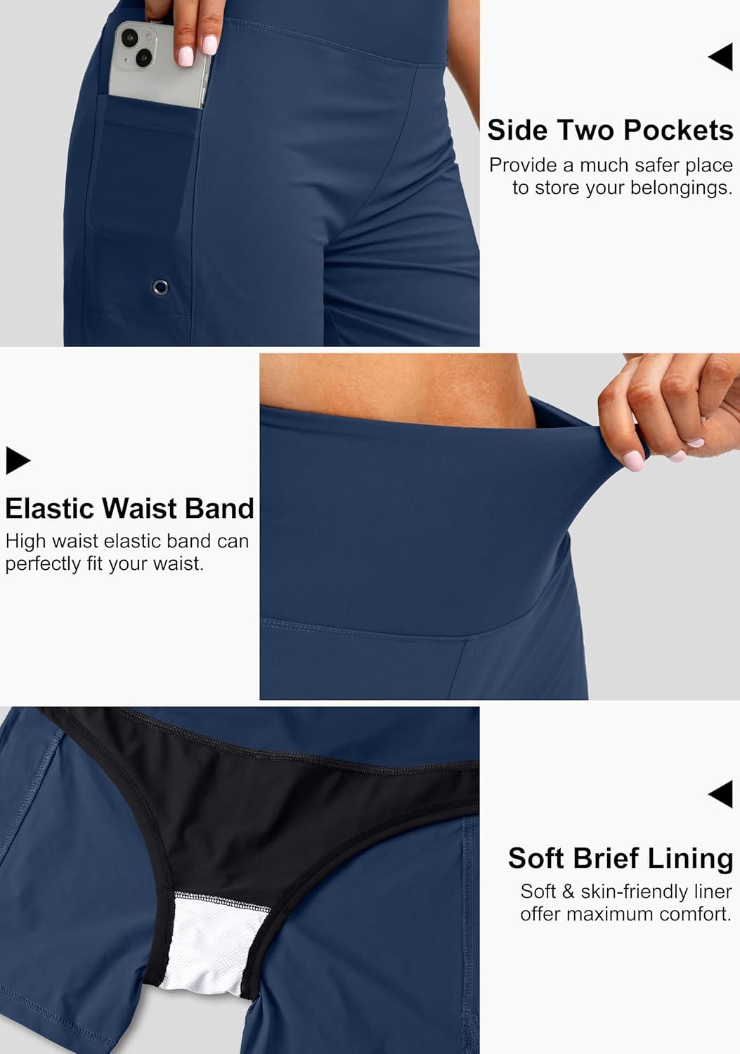 imageG Gradual Womens 5 High Waisted Swim Board Shorts with Phone Pockets UPF 50 Quick Dry Beach Shorts for Women with LinerBlue