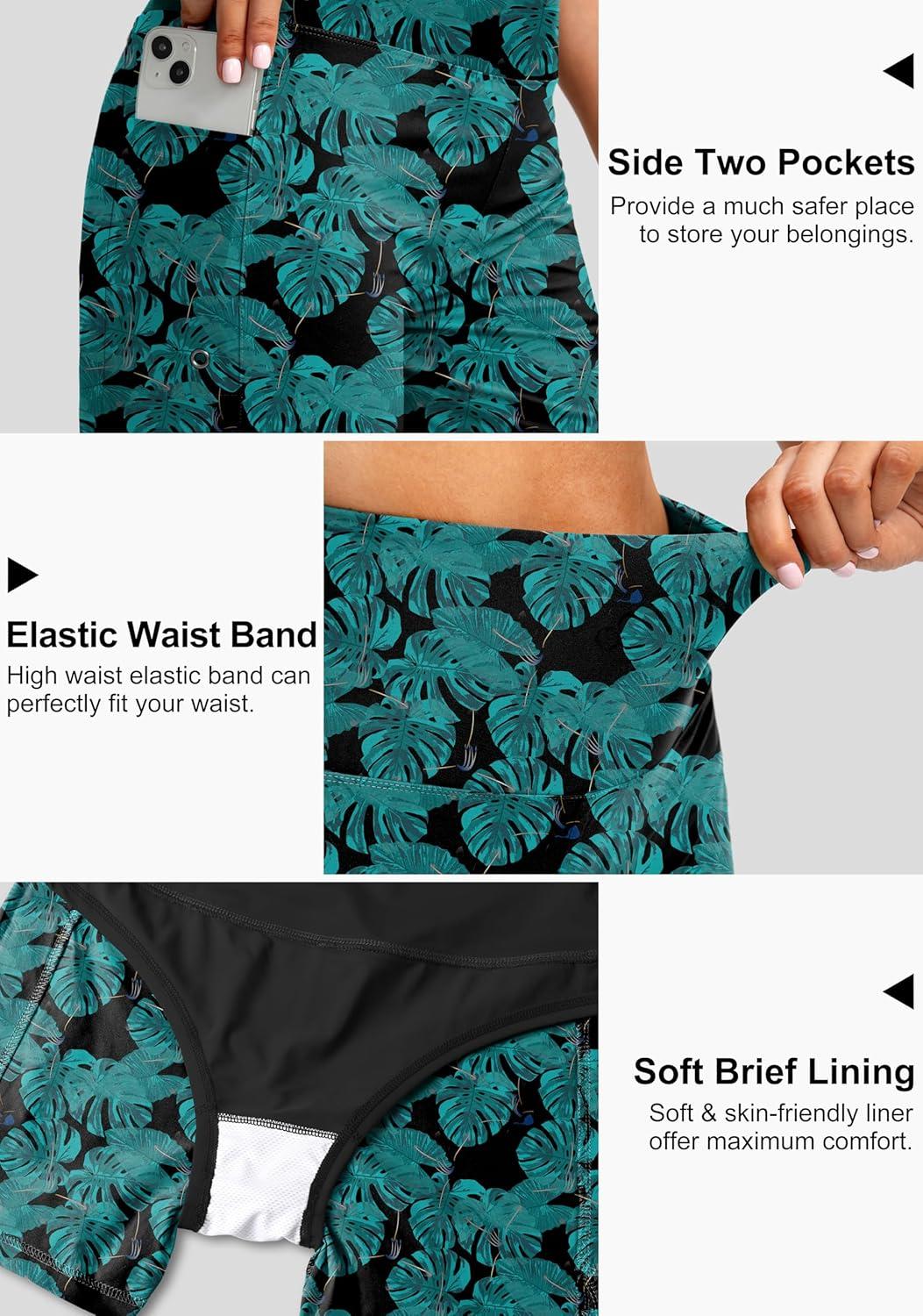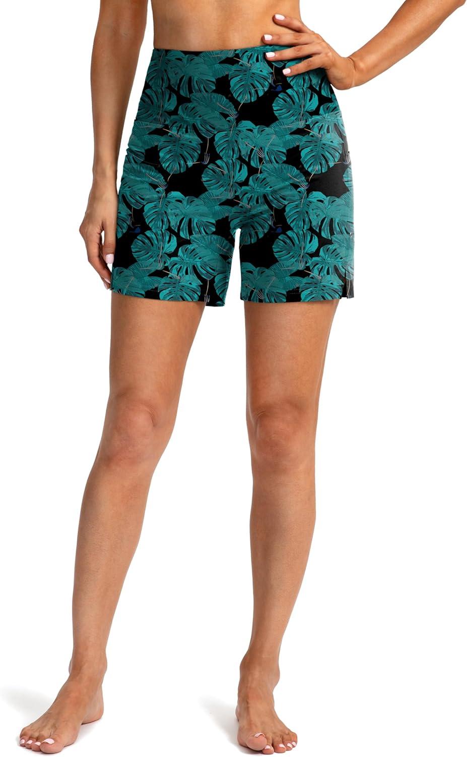 G Gradual Women’s 5″ High Waisted Swim Board Shorts with Phone Pockets UPF 50+ Quick Dry Beach Shorts for Women with Liner(Leaf)