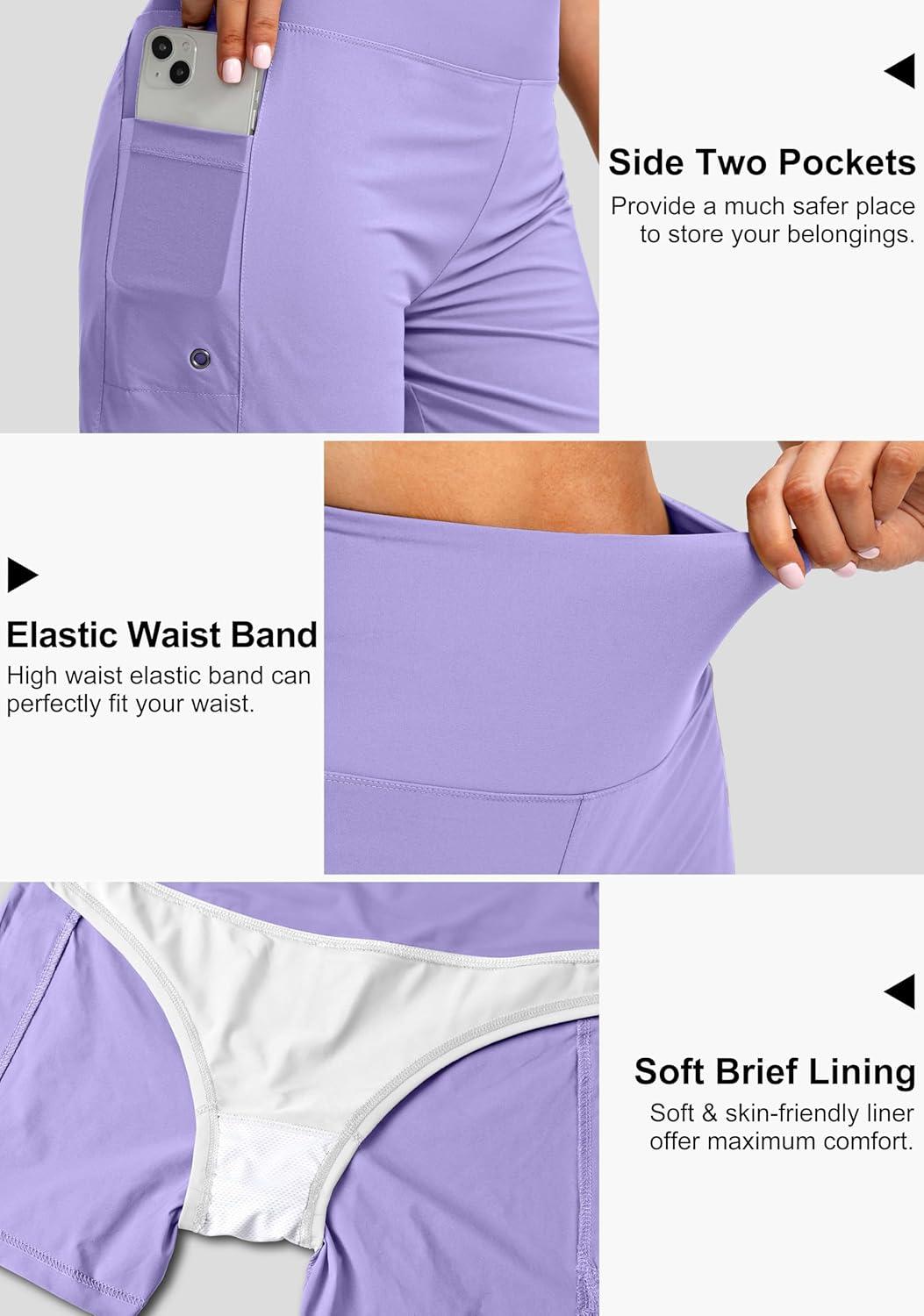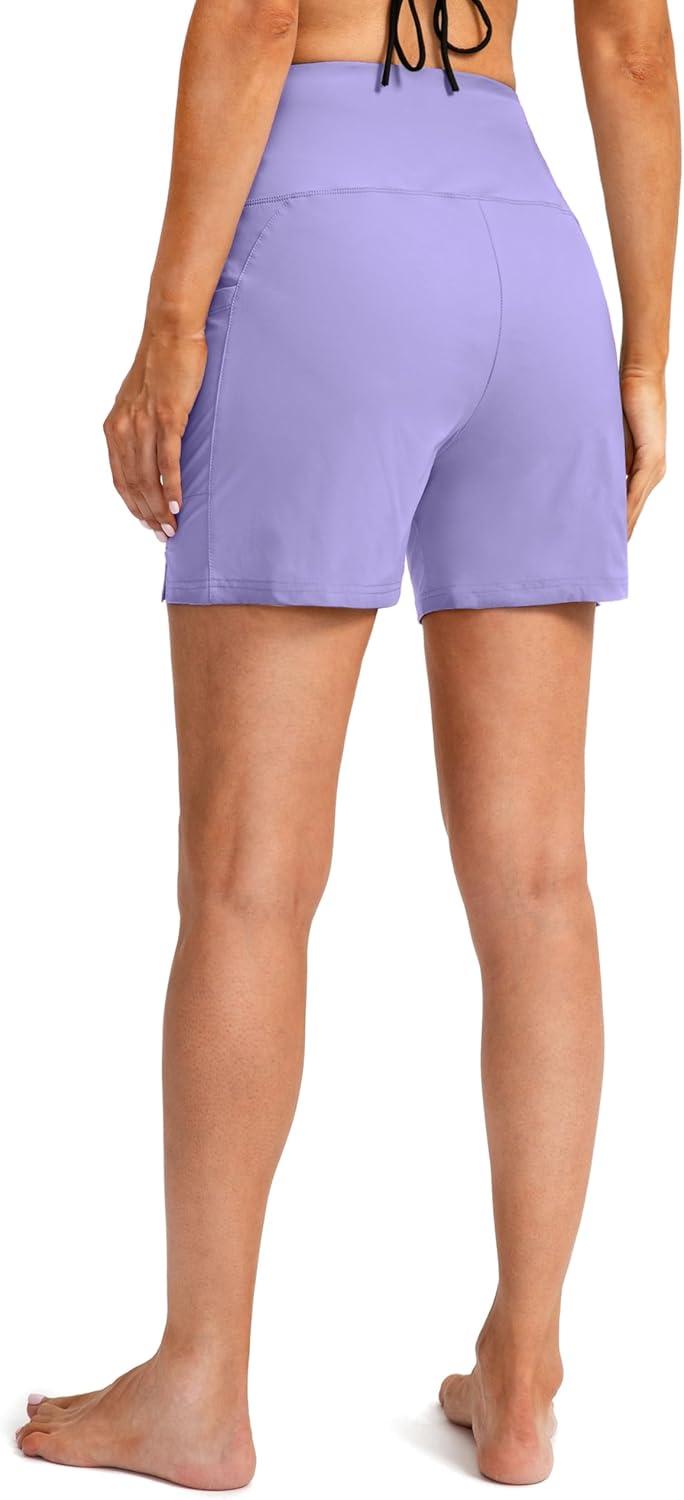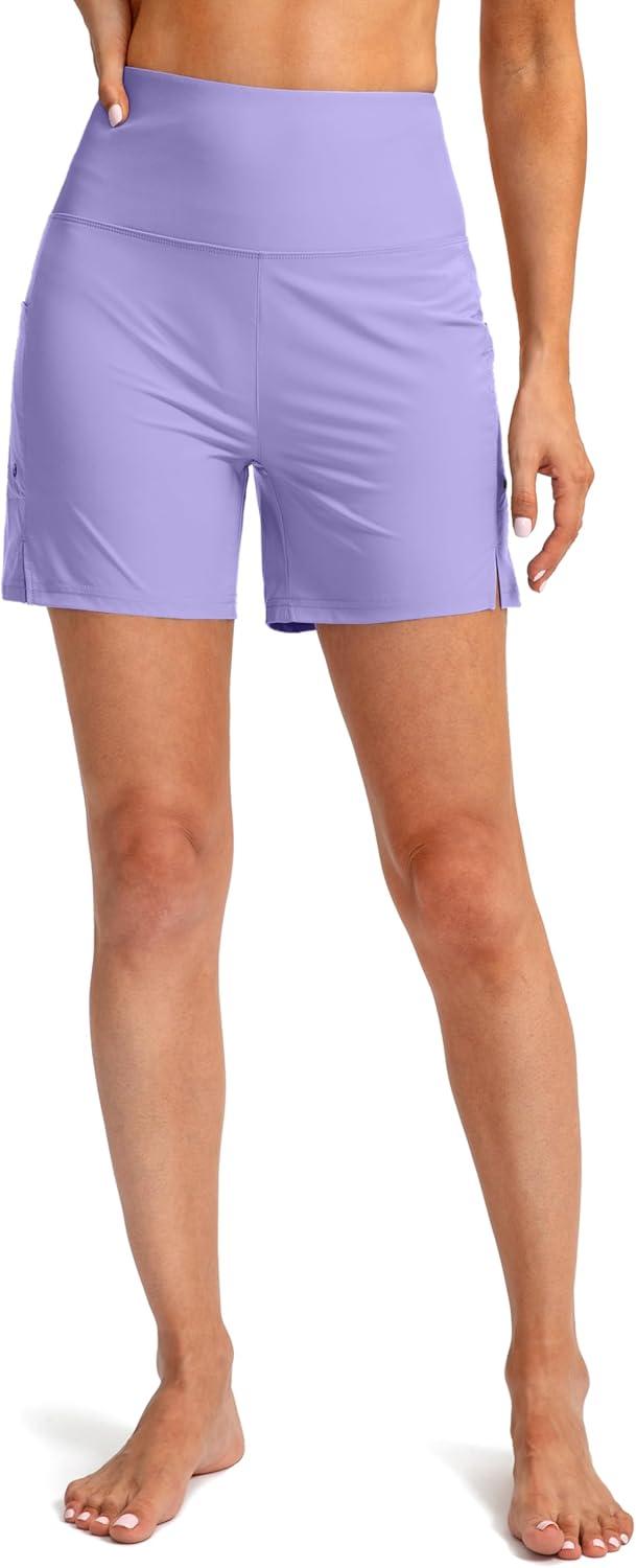 G Gradual Women’s 5″ High Waisted Swim Board Shorts with Phone Pockets UPF 50+ Quick Dry Beach Shorts for Women with Liner(Light Purple)